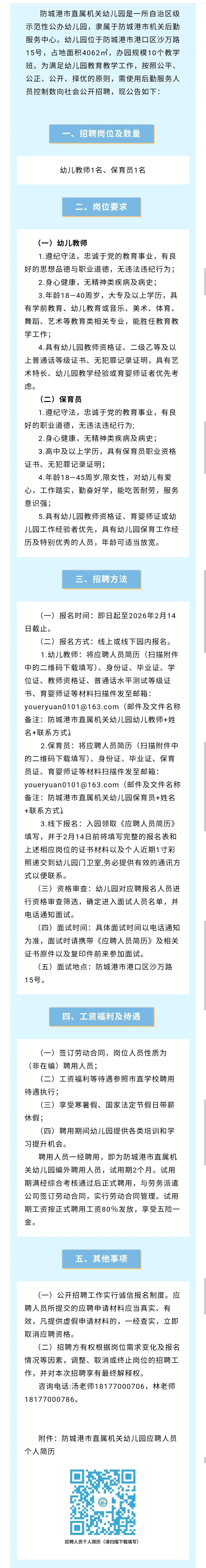 防城港教师招聘:防城港市直属机关幼儿园招聘