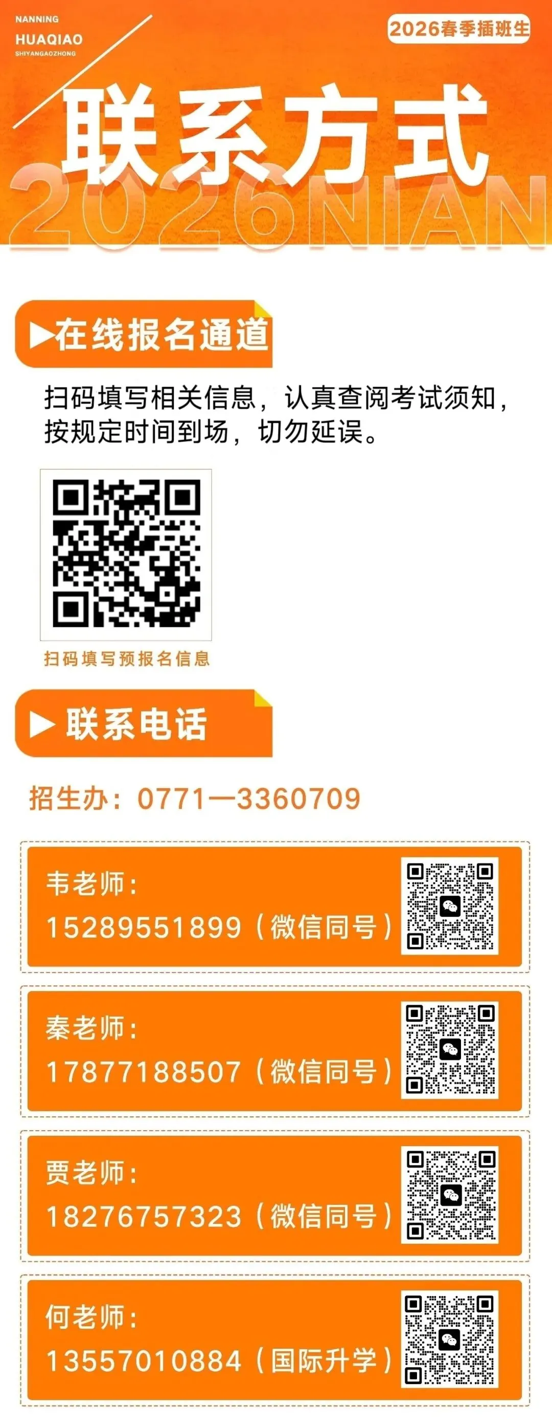 1.符合报名条件学生,可电话报名、现场报名或扫描预报名二维码报名;