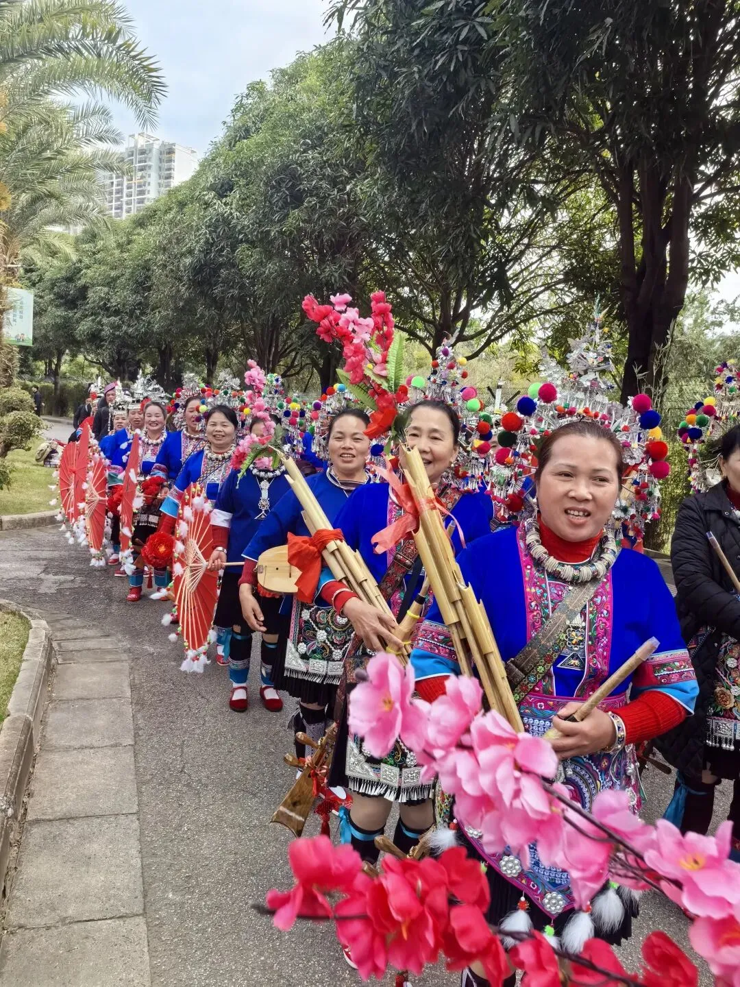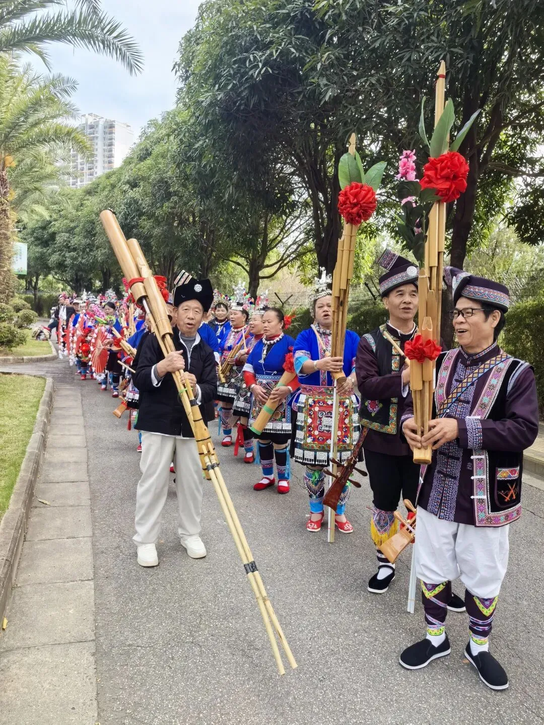 2月1日,南宁市花卉公园内掀起一场浓郁的民族风。侗族文化展示活动在此热烈举行,尽管冬日寒风袭人,却丝毫未减弱现场演员与市民的热情。侗族同胞们吹响芦笙、弹起琵琶,唱起气势恢宏的多耶,吸引了众多市民驻足观看,现场赞叹声不绝于耳。