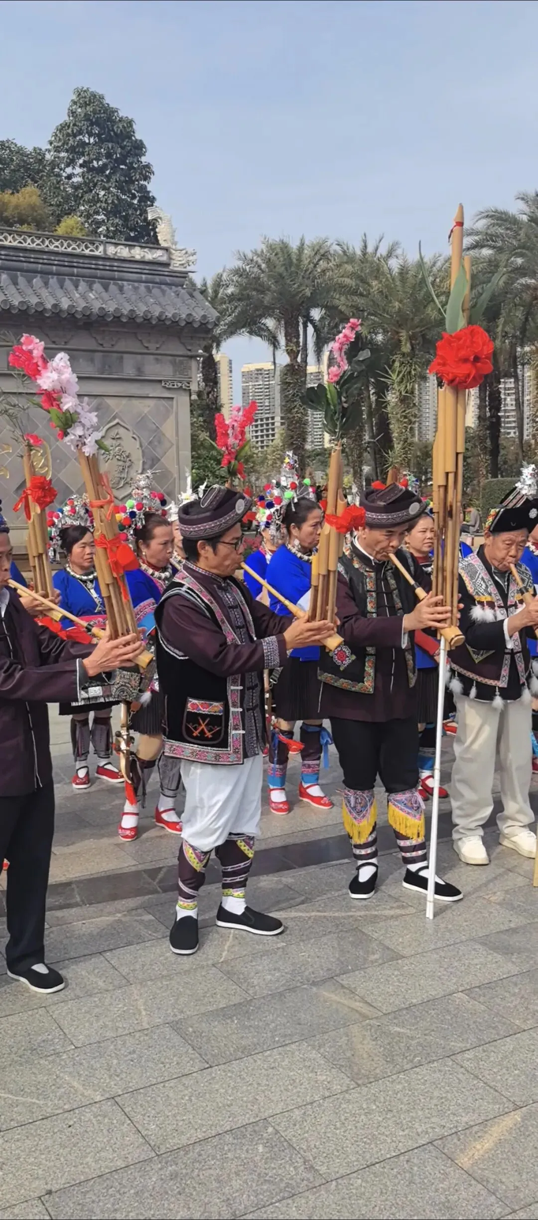 活动现场,不少市民沉浸于这场视听盛宴之中。带着孩子前来游玩的市民李女士兴奋地说:“第一次现场听到芦笙的声音,特别震撼。孩子也跟着节奏手舞足蹈,这样的非遗展示不仅好看,还能让孩子近距离了解多元文化。”