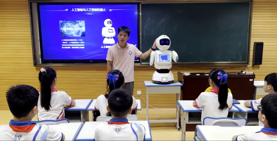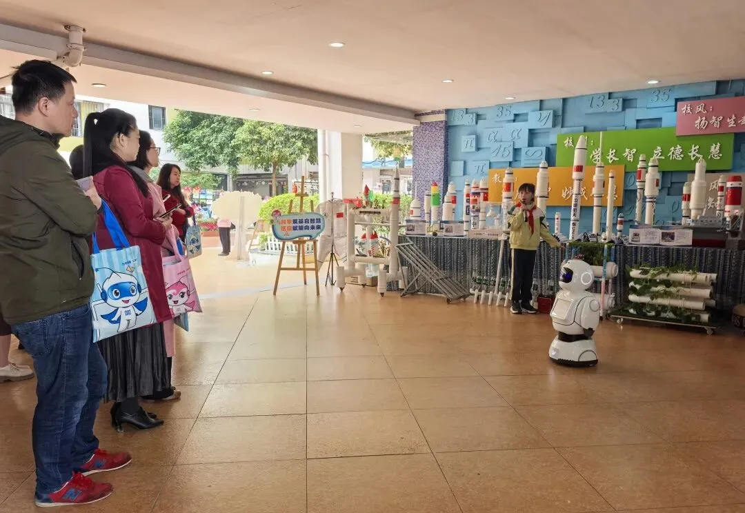 南宁市明秀东路小学教育集团作为全国人工智能实验教育实验学校,秉承“用教育智慧成就幸福人生”的办学理念,将人工智能教育深度融入“五育融合”育人体系。学校不仅专项投入建成科创展厅等功能空间,配齐专业师资与“宾果机器人”教学设备,更以“宾果机器人”为实践载体,推动人工智能教育常态化、实效化落地,让科创素养培养融入日常教学。