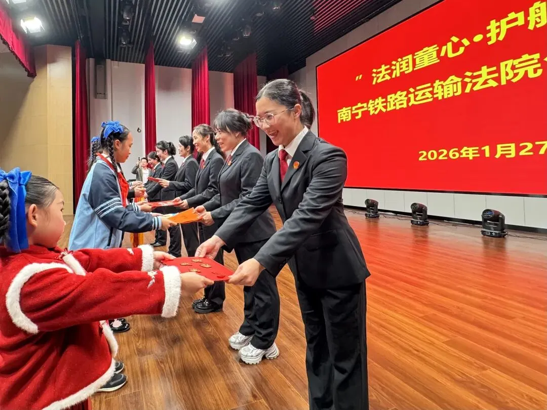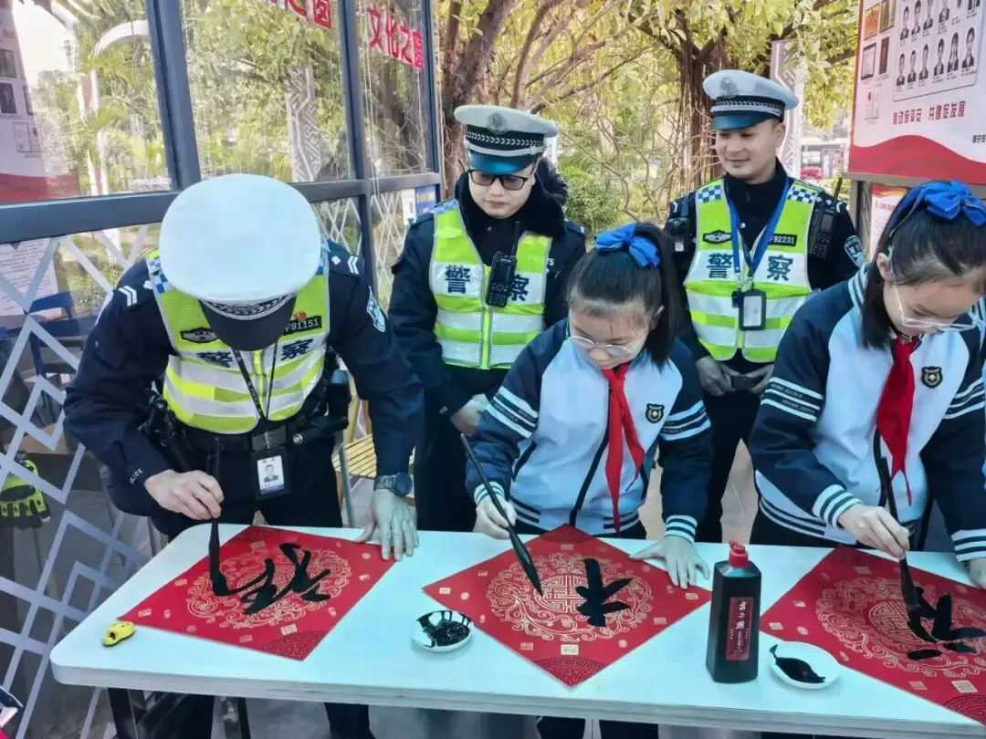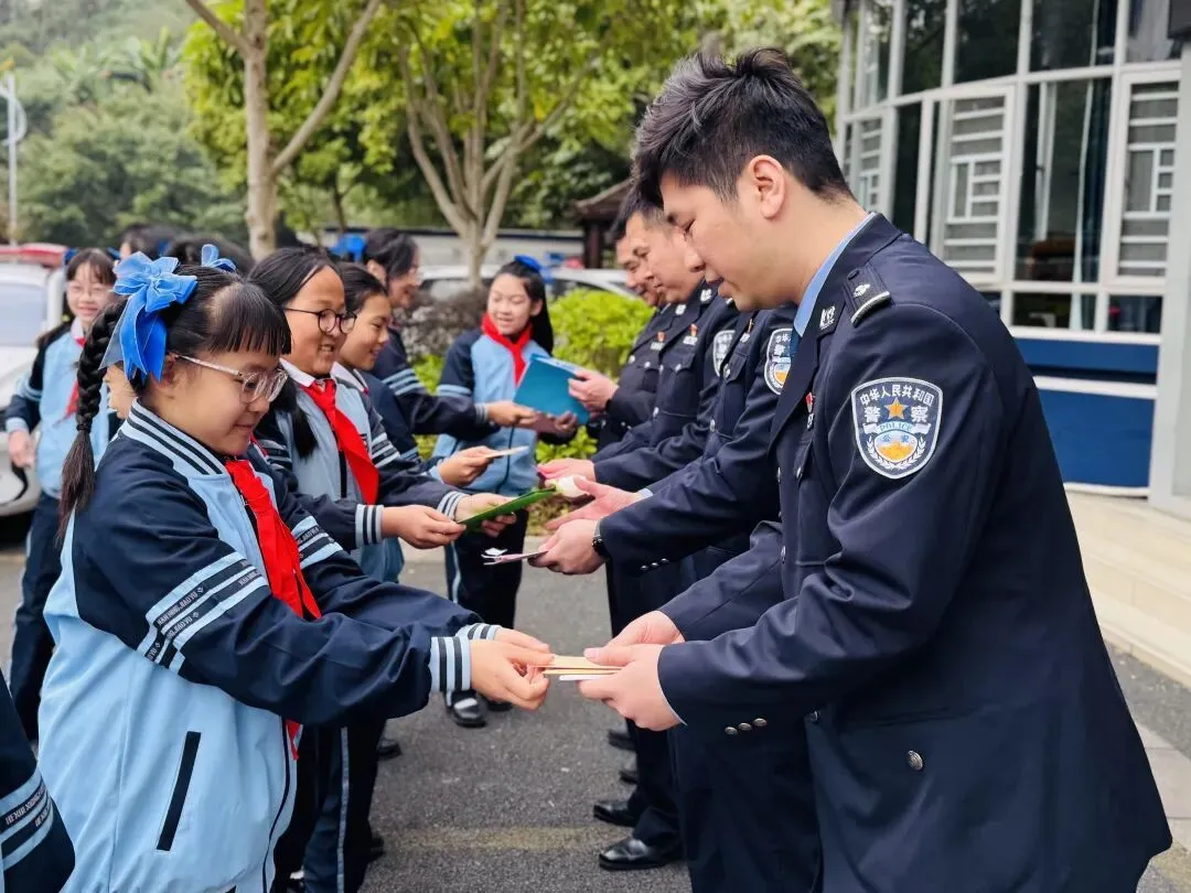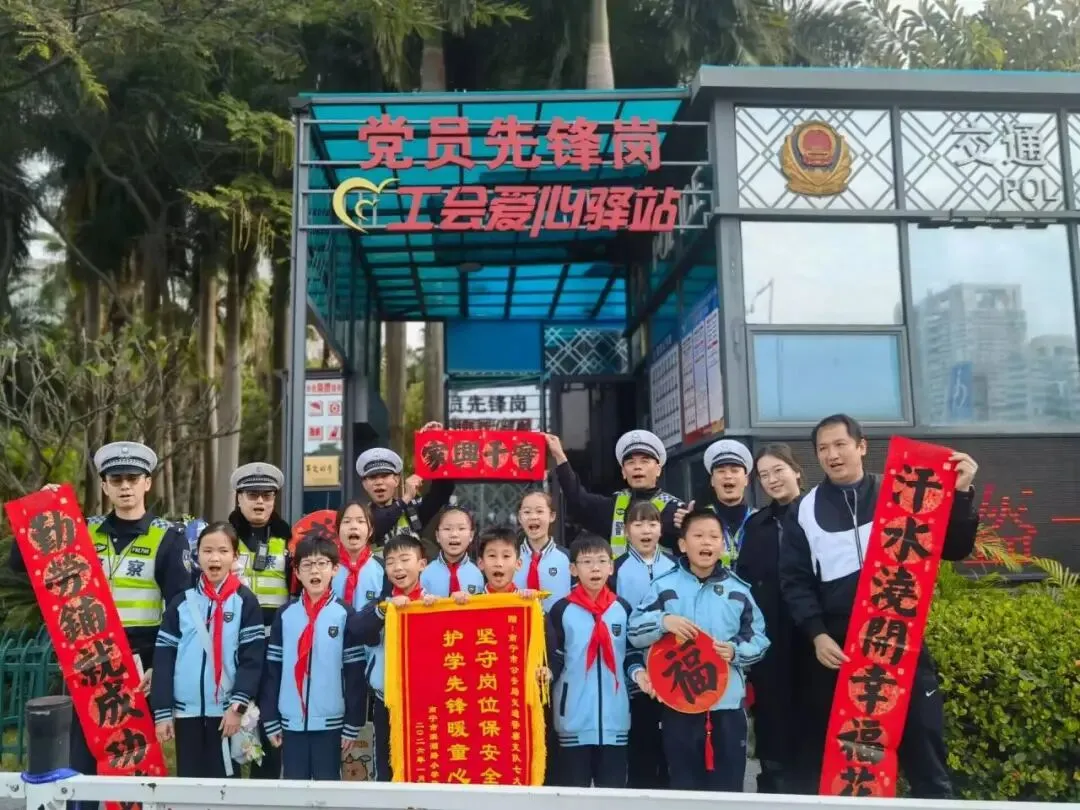 南宁市滨湖路小学教育集团以“双向奔赴,温暖共情” 为核心,组织党、团、队员代表走进辖区派出所、交警大队、消防救援大队、法院等单位,开展新春慰问活动。活动通过实践体验培育学生的共情理解、感恩之心与责任担当,向守护平安的一线工作人员送上新春祝福。