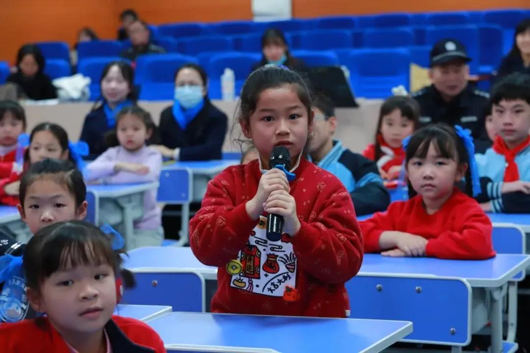 慰问现场温情洋溢。子女代表分享父母坚守岗位的日常故事,让同学们读懂责任的重量。少先队员代表献上合唱、“滨湖拳”武术表演等节目,向长期默默守护师生平安的工作者们送上专属祝福。平安守护者们也化身“安全老师”,讲解交通安全、防拐骗等实用知识。最后,大家携手共写“福”字,在笔墨书香中延续温情。
