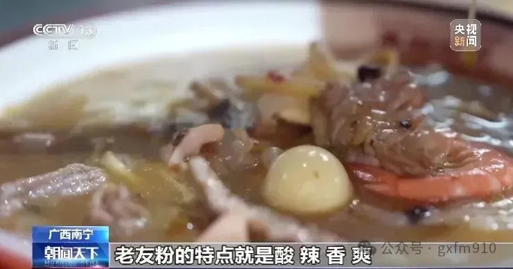 为什么叫老友粉呢?据说,清朝末年,邕城有位老翁每天必光顾邕江边一茶馆喝茶,与茶馆老板渐成好友。有一天,老翁因感冒没有去茶馆,茶馆老板便亲自下厨,爆香蒜末、豆豉、辣椒、酸笋、牛肉末、胡椒粉等,再放入精制面条,煮成热辣滚烫的汤面一碗,送予这位老友吃。老翁吃后出了一身汗,感冒痊愈,感动之至,将此面冠以“老友面”之称。之后茶馆老板也用此做法煮米粉,食之开胃驱寒,“老友面”“老友粉”由此广受食客欢迎而经久不衰。