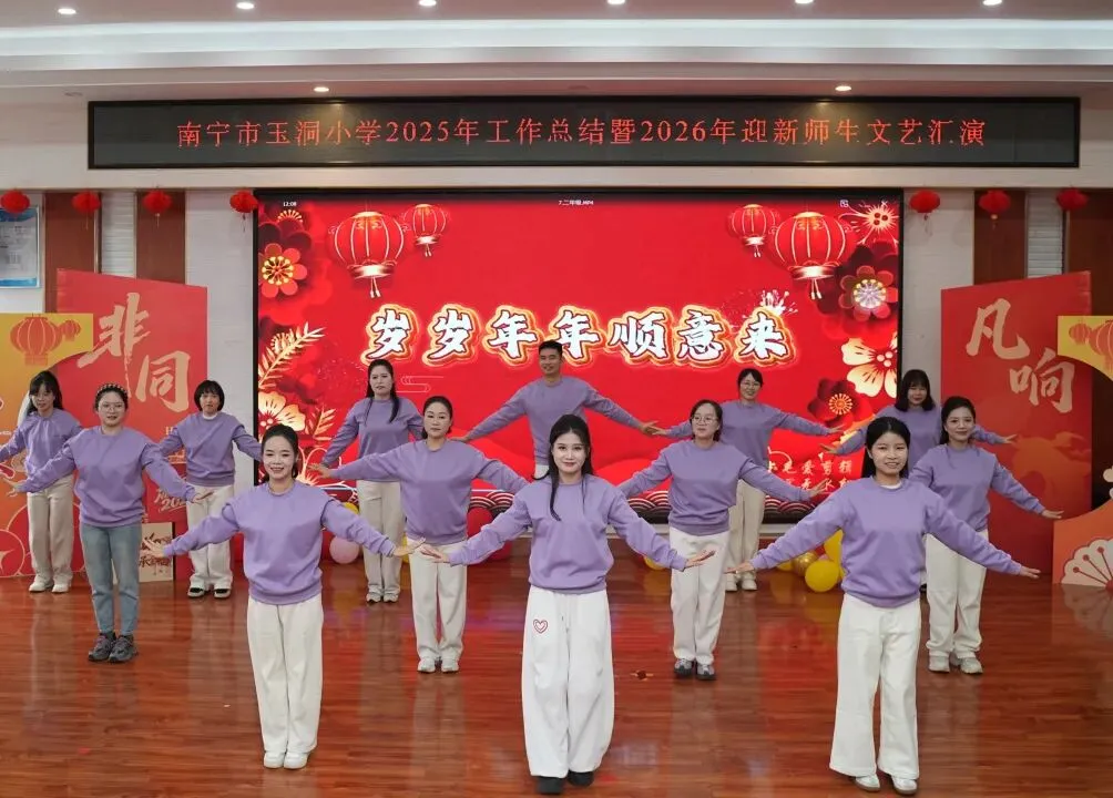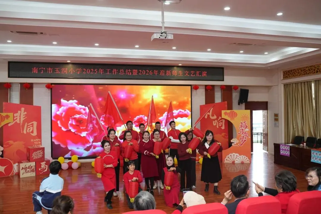 时光荏苒,新岁将至,在马年春节即将来临之际,1月30日上午,南宁市玉洞小学举办2025年工作总结暨2026年迎新师生文艺汇演,全体教职工、部分学生代表以及退休教师参加。