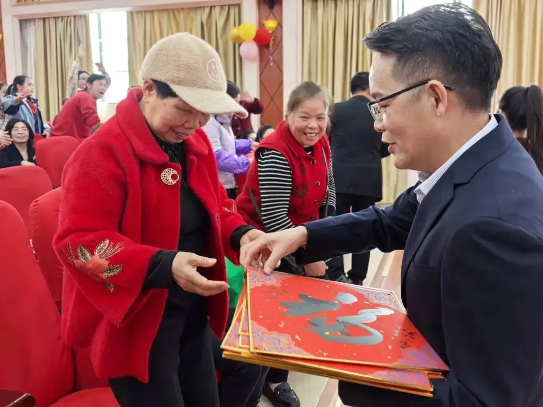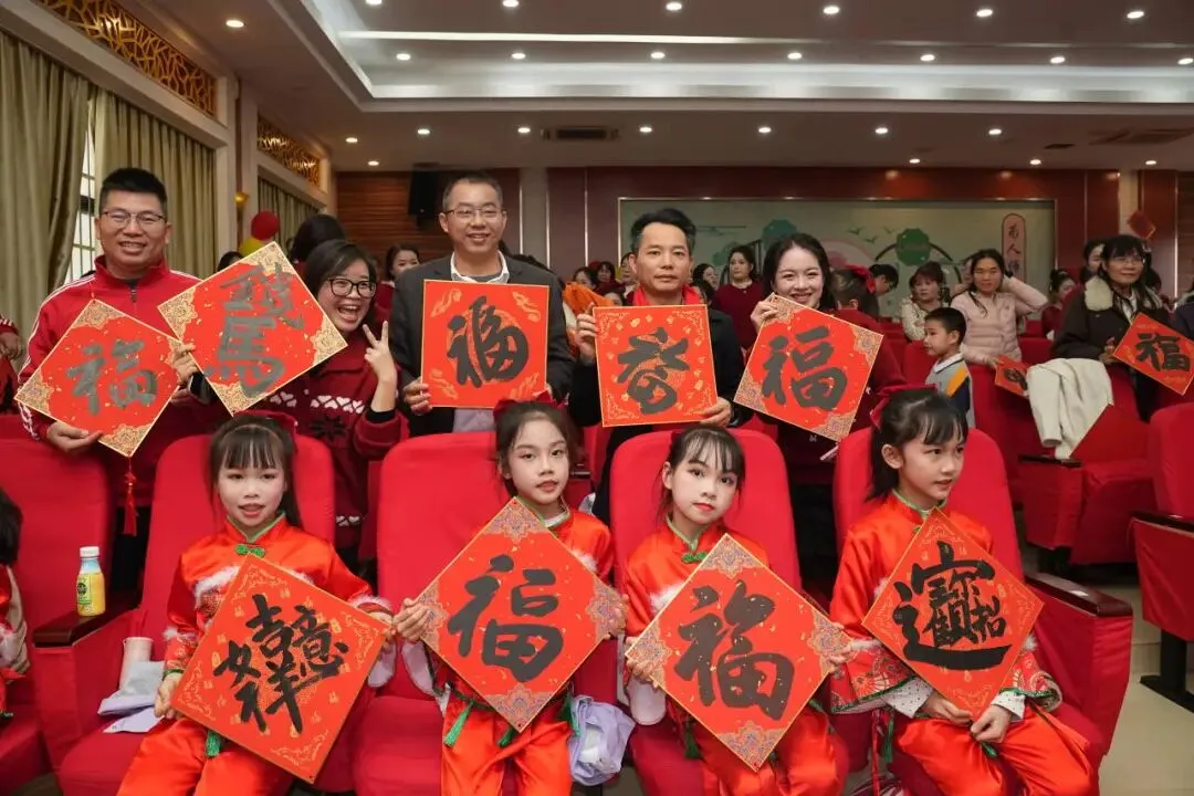 最后,学校领导为全体教职工送“福”环节将活动推向了最温馨的时刻,在刘校长的带领下,学校领导把火红的“福”字送到老师们手上,收到“福”字的老师们脸上洋溢着幸福的笑容。全体教职工与“福”字合影留下美好瞬间。