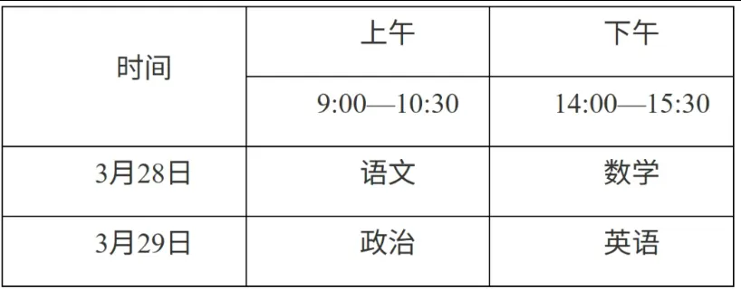文化考试科目为语文、数学、政治、英语四科,每科满分为150分,四科满分为600分,使用国家通用语言文字作答。所有考生必须参加普通高考报名所在地省级招生考试机构组织的文化考试。