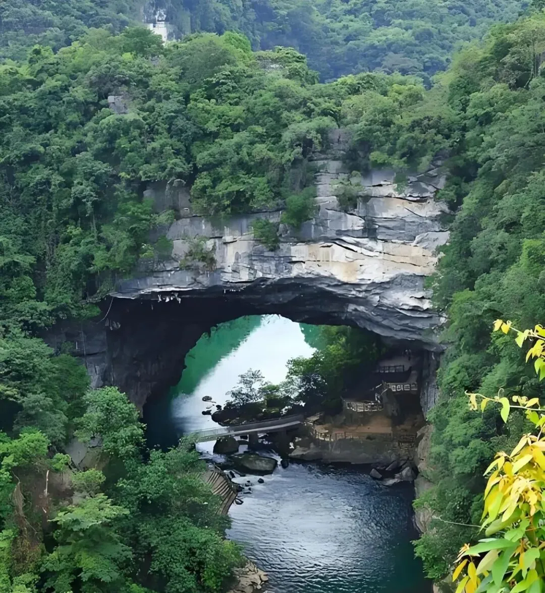 石门仙湖在县里,岩壁夹水,洞口像门,顺光拍照好看。