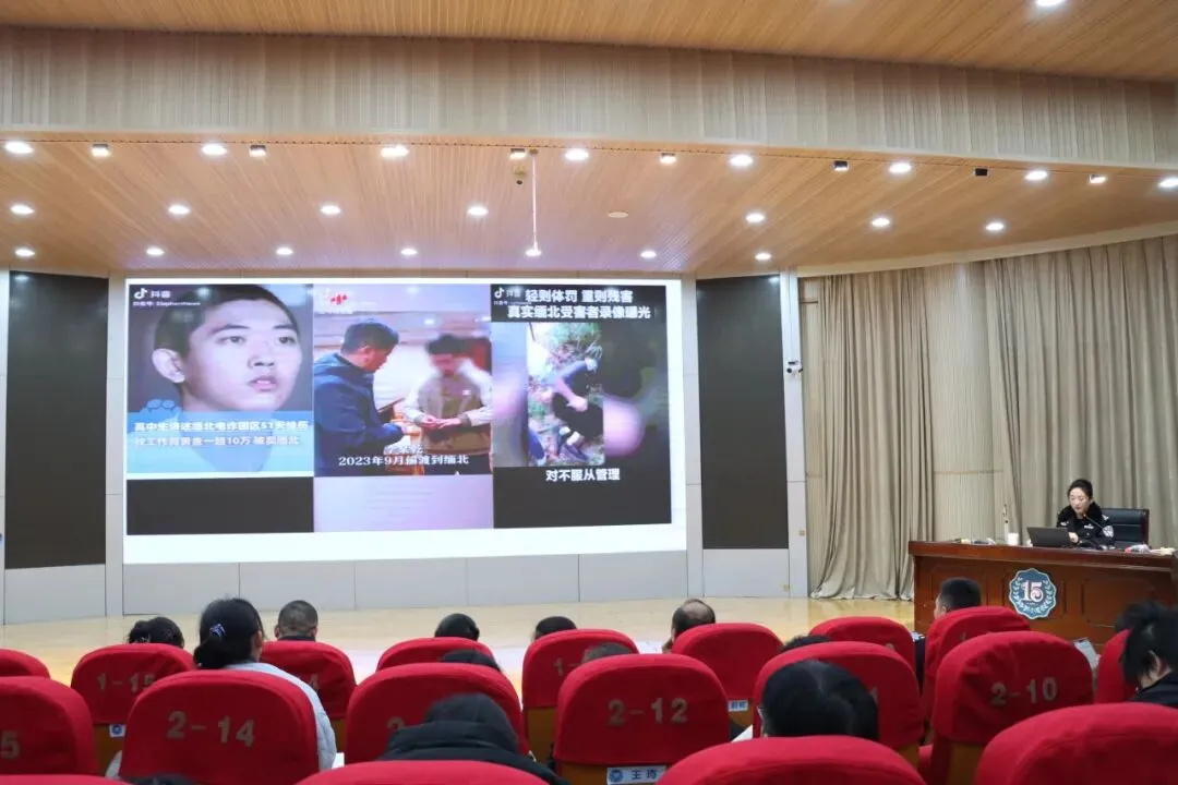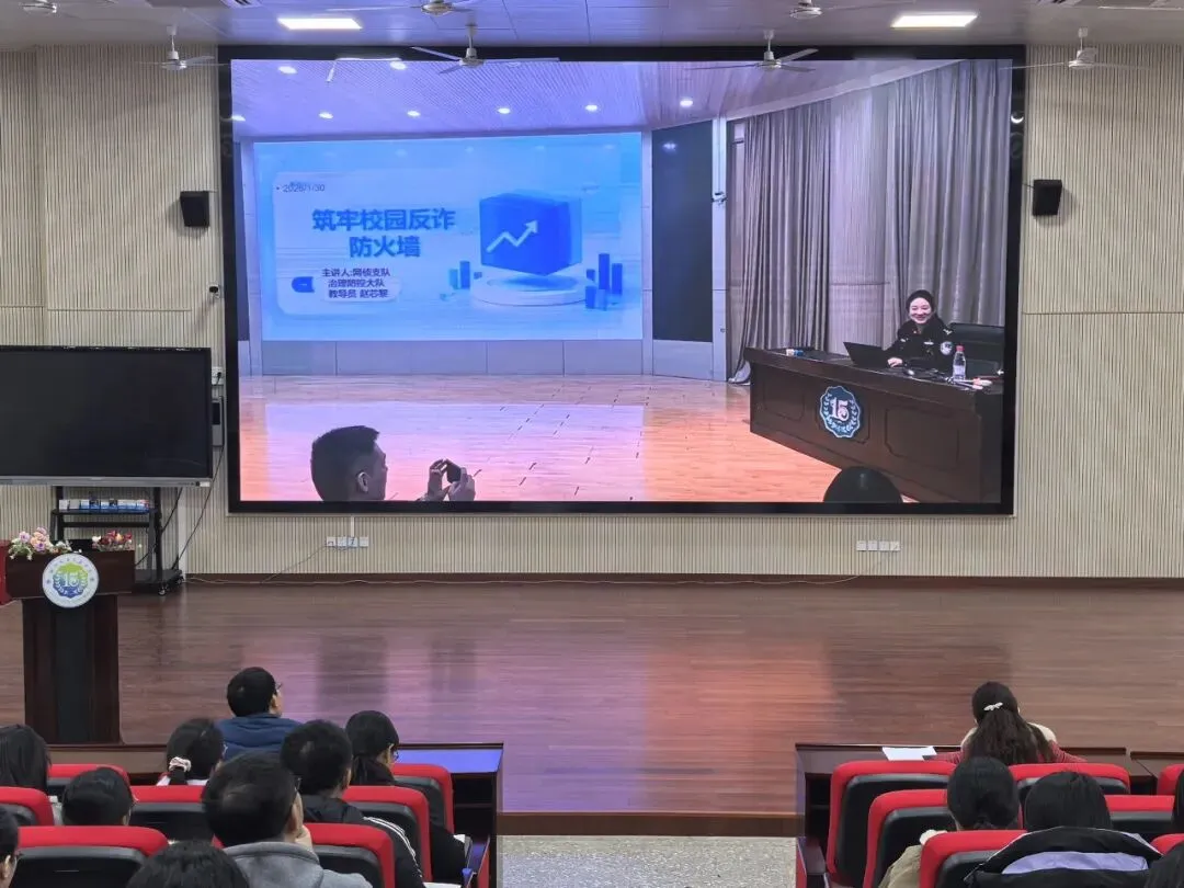 在十五中本部主会场,来自柳州市公安局网络新型犯罪侦查支队治理防控大队教导员赵芯黎为全体教职工带来了题为《筑牢校园反诈防火墙》的专题讲座。她结合当前高发的网络诈骗案例,深入浅出地剖析了针对教师群体和青少年学生的常见诈骗手段,并提供了实用的防范策略与应对技巧,有效提升了教职工的安全防范意识和能力,为构建平安校园筑起了坚实的防线。