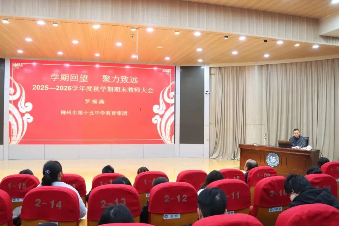 紧接着,校长罗福满对本学期学校的整体工作进行了全面、系统的总结。他回顾了本学期在教育教学改革、学生全面发展、校园文化建设、管理服务提升等方面取得的显著成绩,肯定了全体教职工的辛勤付出与团结协作。对下一阶段的工作重点,罗福满提出几点要求:教辅资料选用需严格合规,落实“一科一辅”;考试安排将优化评价体系,注重过程性考核;食堂服务将强化食品安全与质量监管,提升师生满意度;校服管理则需规范采购流程与穿戴礼仪,彰显校园风貌。