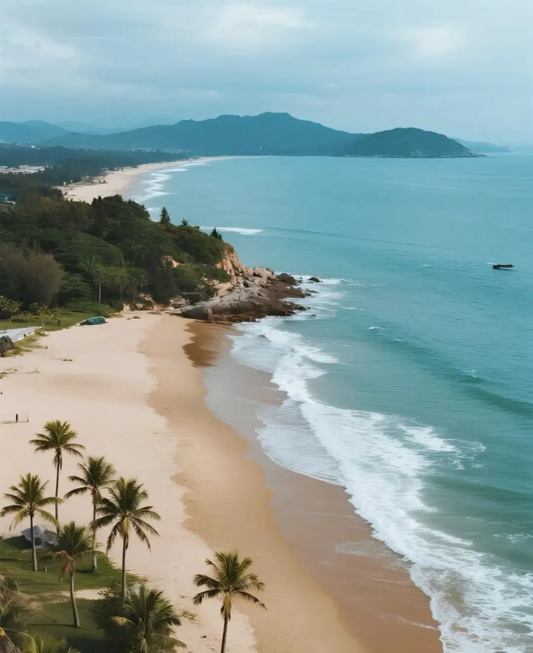 防城港就不一样了,人很少,很安静,去那里,主要是图个清净,适合慢慢待着,防城港有江山半岛和万尾金滩,海岸线很长,沙滩也宽,不像北海银滩那样人挤人,找个地方坐下,能看一下午渔船在海上飘着。