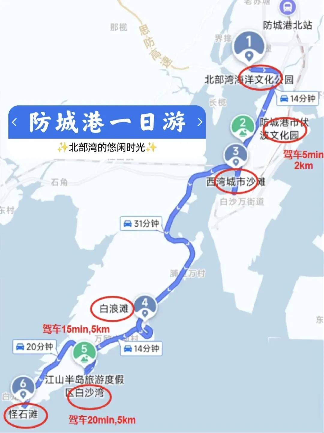我总结了一下,北海和防城港没有好坏之分,北海人多热闹,适合喜欢拍照、爱逛吃的人,防城港人少安静,适合想放松、慢慢玩的人,两个地方的特点不一样,看自己的需求选就好。