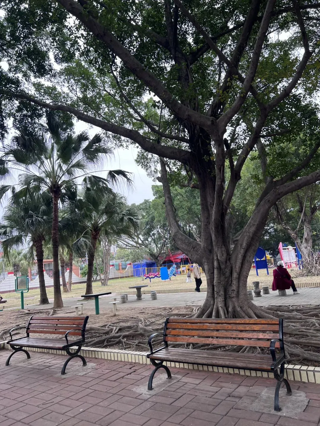 公园中央那棵大榕树,是我记忆的锚点。三十年前搬来时,它还没那么枝繁叶茂。三十年过去,树变得粗壮了,树下的长椅虽然变旧了,但人们在这里聊天、纳凉、发呆的习惯从未改变。