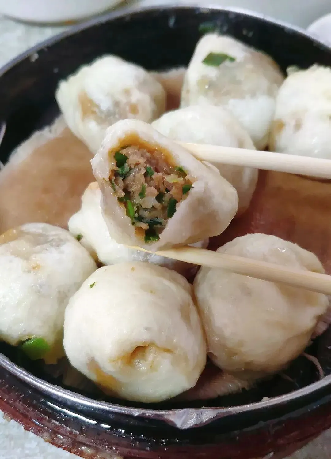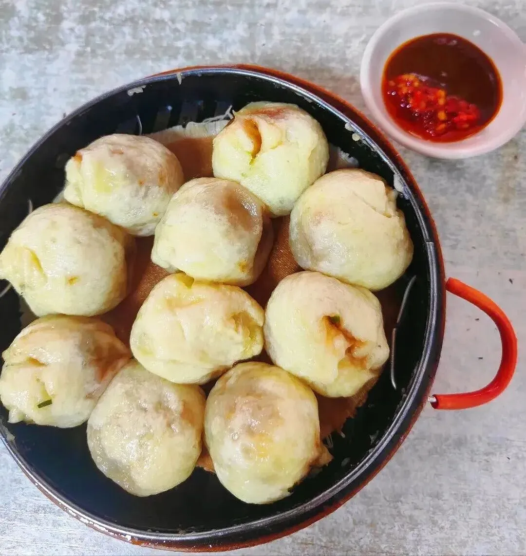 据说肉馅是老板每天剁的猪肉混着葱花,剁得有颗粒感,能吃到肉的肌理,每一口都很扎实。