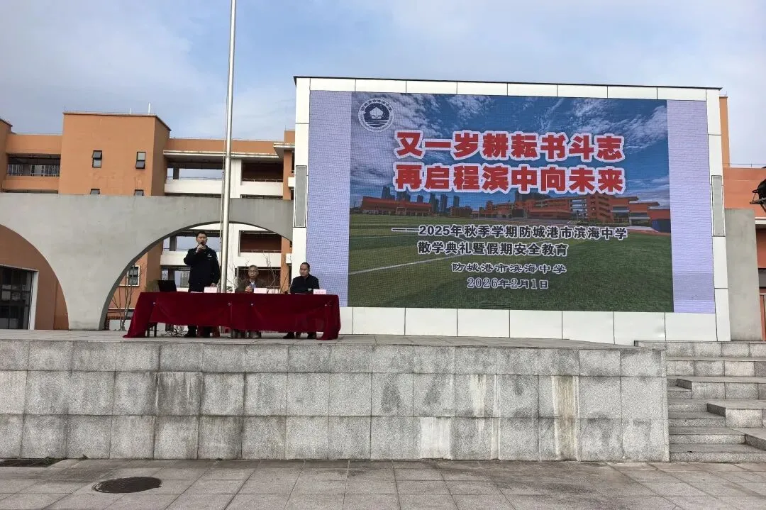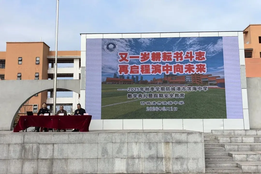 时光镌刻奋进的足迹,岁月谱写拼搏的华章。2026年2月1日上午,防城港市滨海中学全体师生怀揣收获的喜悦与对未来的憧憬,齐聚校园,隆重举行以“又一岁耕耘书斗志,再启程滨中向未来”为主题的寒假散学典礼,为本学期画上圆满句点,为崭新征程蓄力启航。