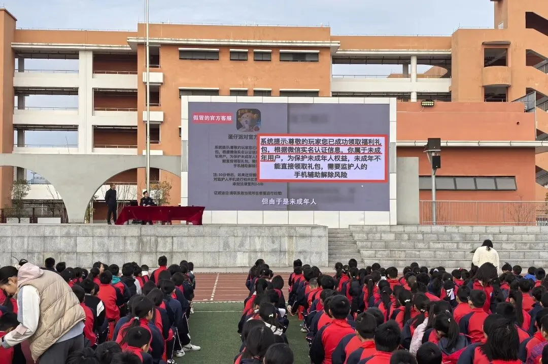 踏上新的旅程,安全是不可动摇的基石。为确保全体师生度过一个平安、健康的假期,学校特邀王府派出所教导员冯敬富为全体师生带来一堂至关重要的法制安全教育课。冯敬富教导员聚焦现实生活,特别是网络空间的安全隐患,通过剖析“网络诈骗”“游戏沉迷”“社交陷阱”等鲜活案例,以案说法,深入浅出地讲解了防范知识和法律常识。