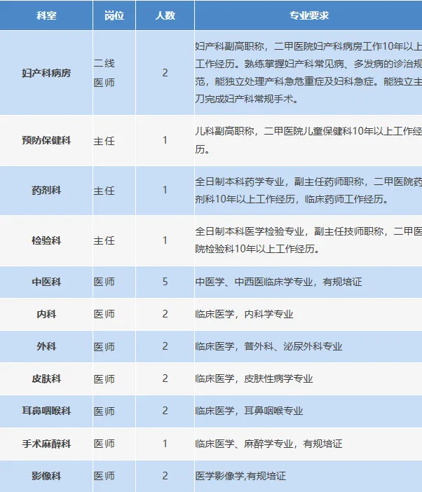 招聘岗位:医师20人、药师