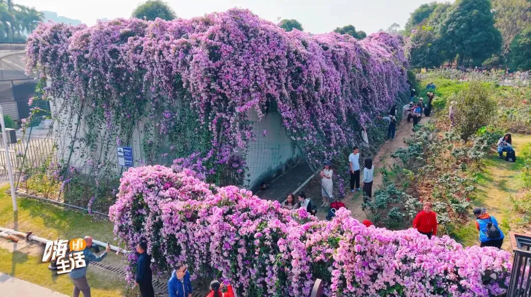 前段时间爆火的蒜香藤花海就在公园的北门附近,紫粉色的花朵如云似雾,密密缀满藤蔓,自高架倾泻而下,恍若一道流淌着诗意的花之瀑布,如今,虽然花期已过,但是在南宁花卉公园里依旧有不少鲜花正在盛开。
