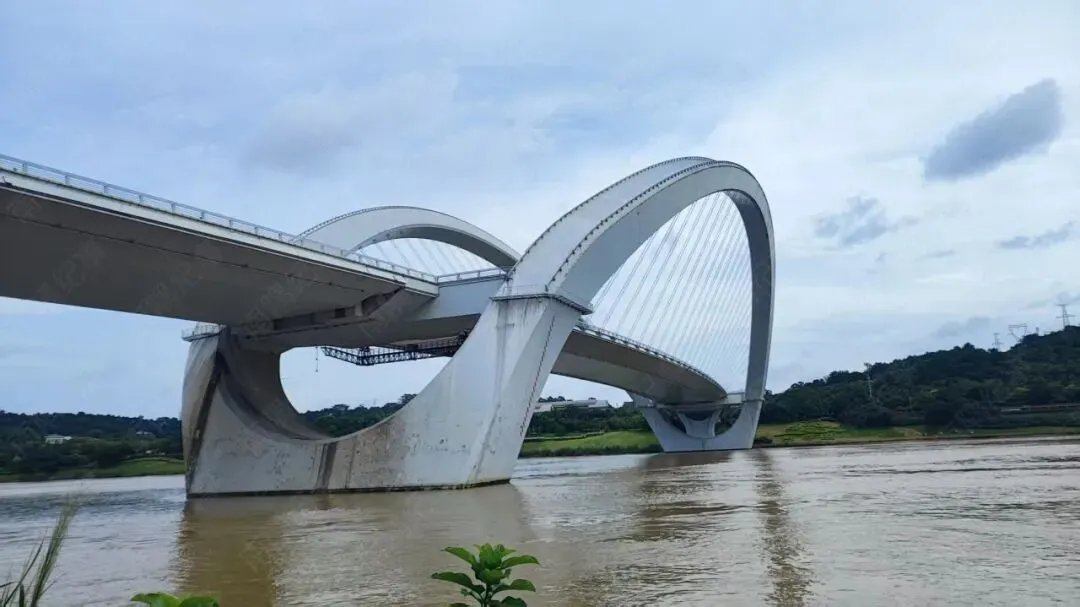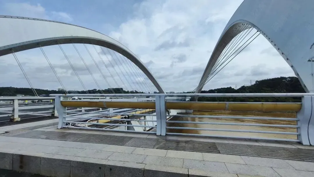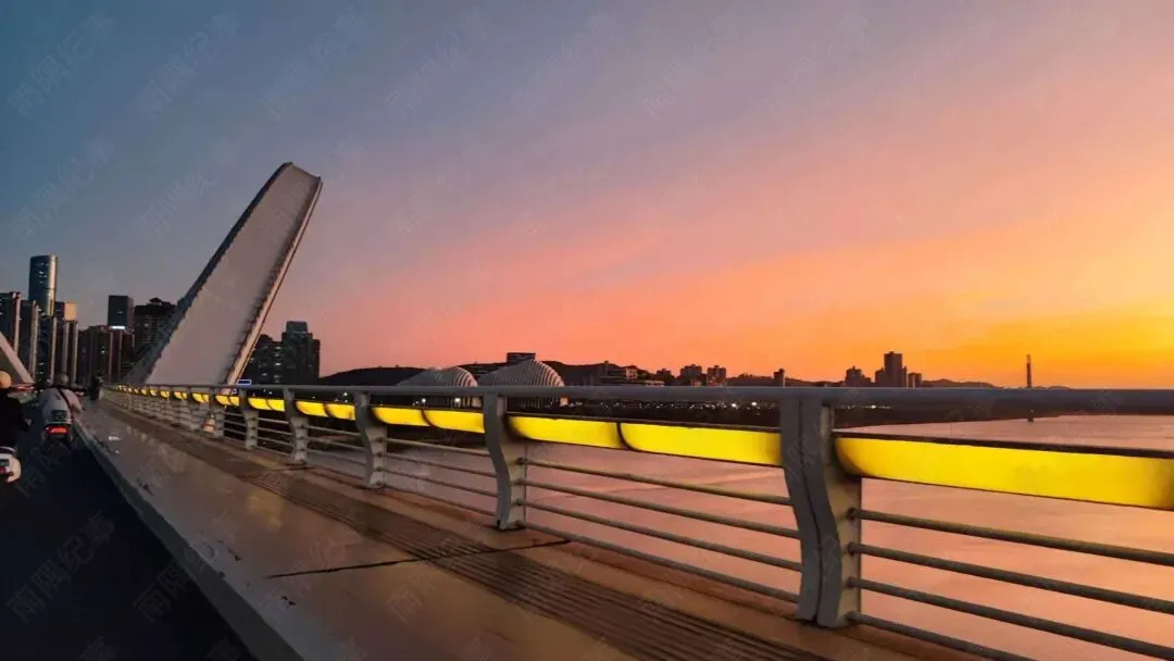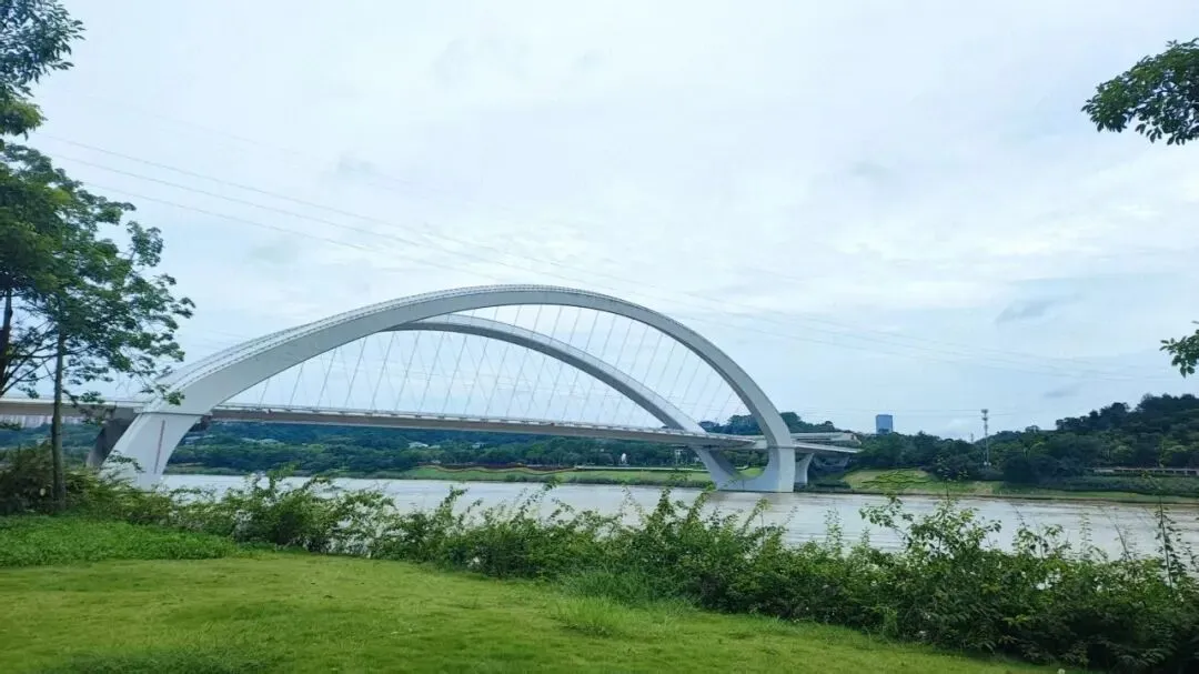 虽说这路走了很多遍,但每次经过这里,我都会下意识放慢车速。这桥的美很耐看,阴晴雨雪各有韵味:晴天时,白色拱肋衬着蓝天像展翅的蝴蝶;下雨天,江面吹过的水汽像一张薄纱,让它多了几分朦胧美;最绝的是下班时分,夕阳把拱肋染成金红色,江面波光粼粼,每次遇到都忍不住驻足多看几眼。