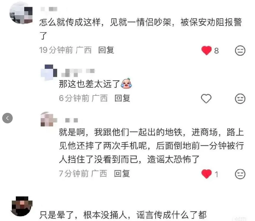但是又有网友表示,这只是两个小情侣吵架,没有血,没捅人