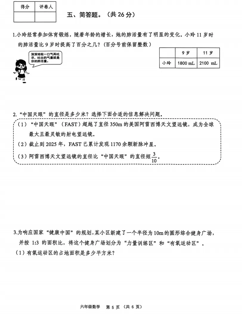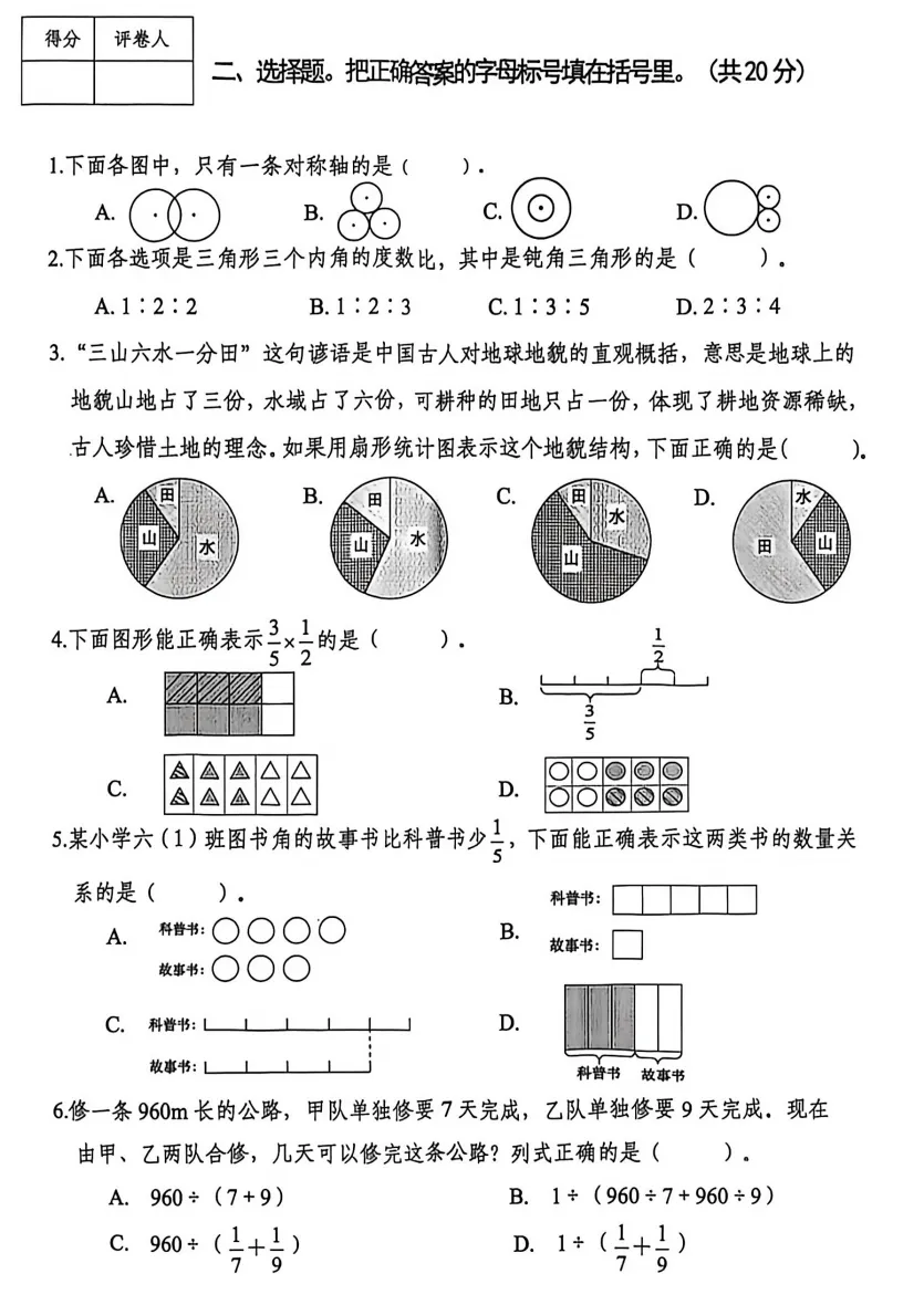 2025-2026年度秋季学期南宁六年级上册期末考试数学试卷