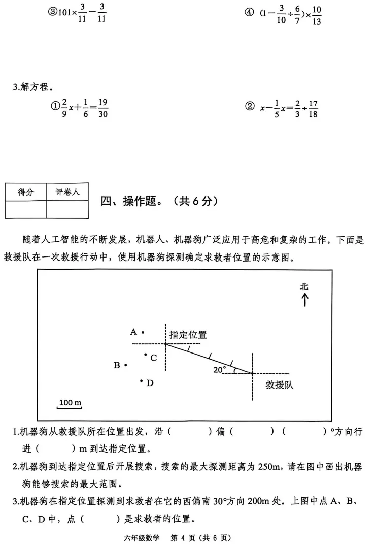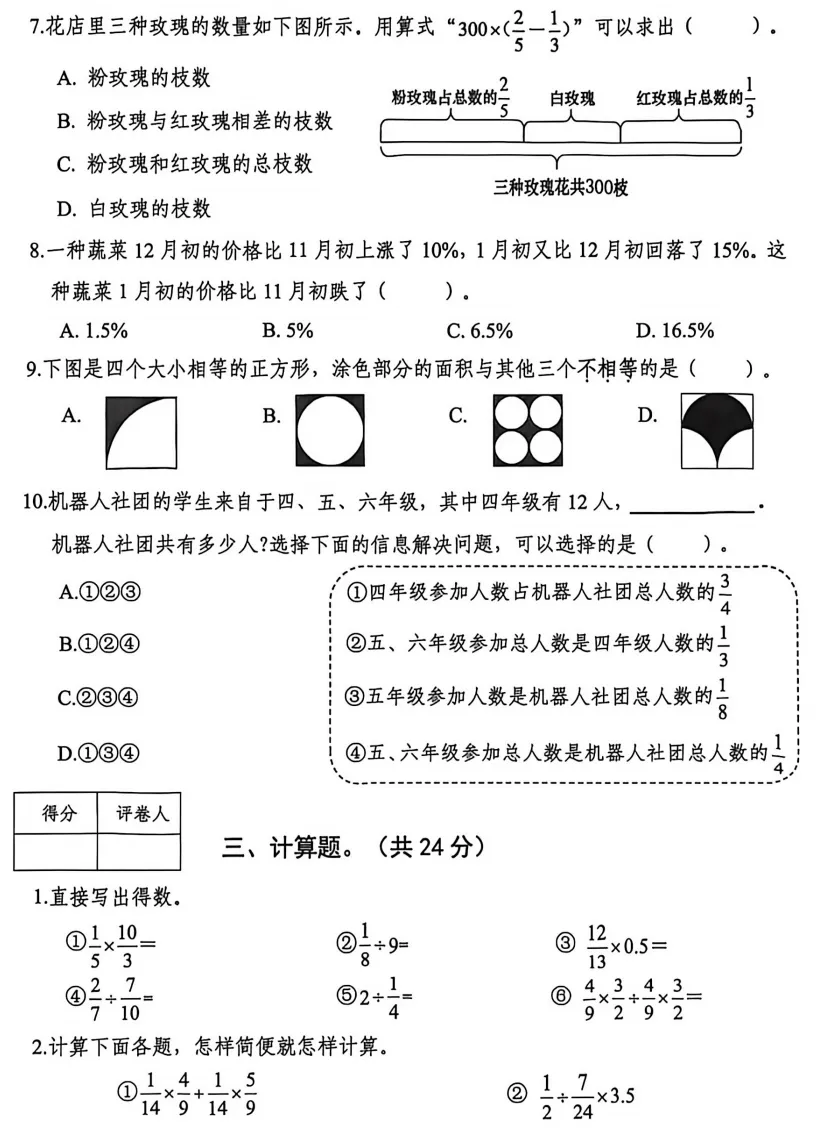 >2025-2026年度秋季学期南宁六年级上册期末考试数学试卷