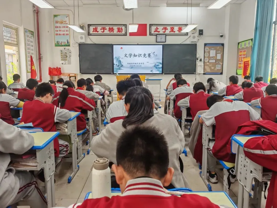 从汉字演变的千年轨迹到耳熟能详的成语典故,从名著中的经典桥段到文人墨客的风骨轶事,一道道精心设计的题目,既是对知识储备的全方位考验,更是一次与经典文学的深度对话。同学们时而凝神蹙眉、沉思冥想,时而握笔疾书、笔尖翻飞,纸张上沙沙作响的书写声,奏响了一场精彩绝伦的 “纸上论道”。