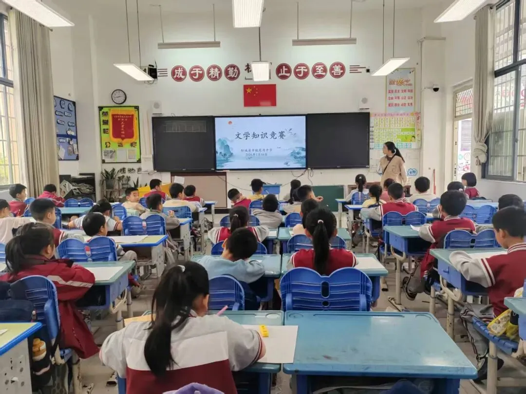 为深耕中华优秀传统文化教育,检验同学们的文学知识积累,激发对经典文学的探索热情,小学语文文学常识竞赛在校园顺利开展。赛场之上,各年级学子端坐桌前,以笔为剑、以知为刃,在题本上郑重书写对文学的热爱与坚守。
