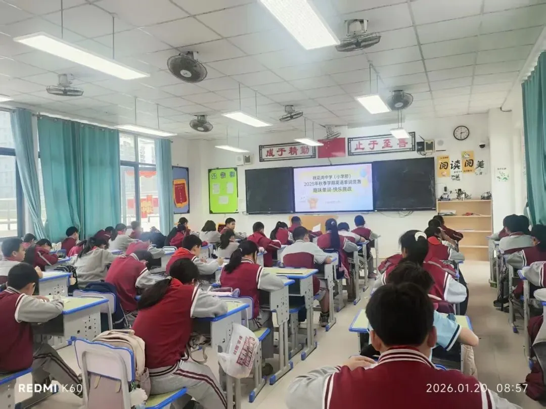 桃枝吐芬,文脉流芳;智思涌动,赛场飞扬!桃中的校园里正浸着清芬的诗意、迸发着灵感的光芒 —— 语文诗词大会吟赏经典、文学常识挑战赛博古通今,数学计算速通赛竞速争先、专项解题思辨赛巧思破局,英语单词大闯关趣学逐光!五大赛事次第铺展,小选手们摩拳擦掌赴赛场,带着对知识的热爱全力以赴,让积累的才华在竞技中闪光,让成长的喜悦在比拼中绽放!