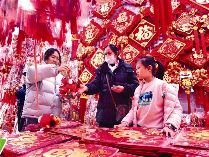 不远处,年轻的文世豪忙着招呼顾客。摊位上,马年窗花、刺绣“福”字与毛绒玩具整齐摆放;案台上,老艺人手写的“龙马精神”“一马当先”春联墨香四溢。“第一年摆摊就赶上马年春节,中国人给马赋予了很多美好寓意,我也希望自己的创业能‘马上成功’。”文世豪说,他精选的各类马年文创,无论是传统对联还是创新红包都十分受欢迎,每日能卖好几十件,还有单位前来团购。