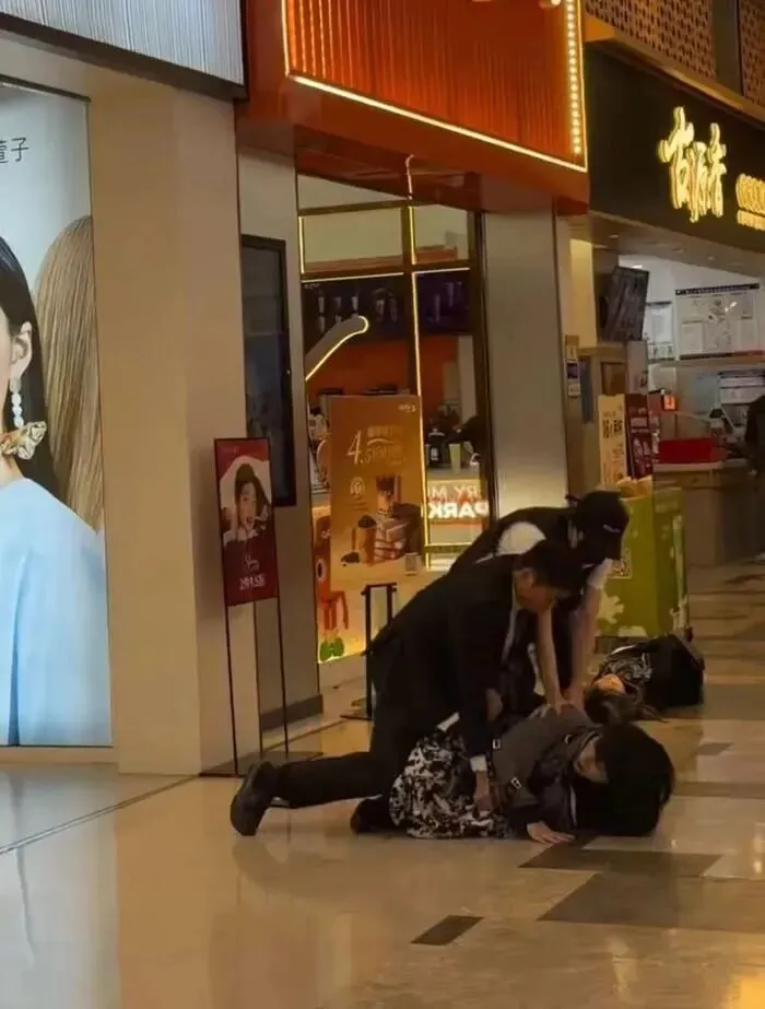 网友发布的视频显示,一名身穿灰色上衣和黑白花裙的男子与商场工作人员拉扯,抬脚踢了工作人员后被制服倒地,其身后还有一名倒地的女子,周围站满围观群众,另一则视频则显示公安民警也到场制止该男子,有网友称疑似该男子持刀伤到倒地女子。
