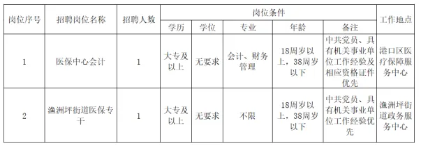 因工作需要,防城港市港口区医疗保障局决定面向社会公开招聘工作人员2名(编外临时聘用人员)。现将有关事项公告如下: