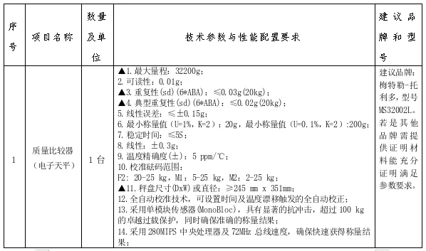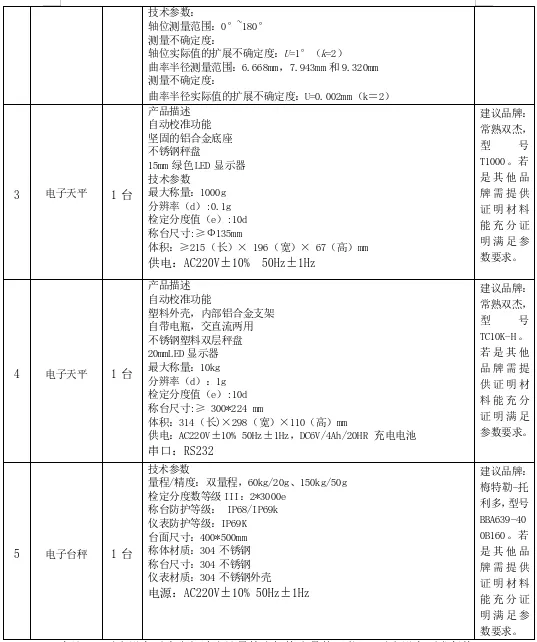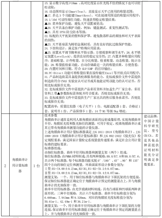 根据采购管理有关规定,为切实做好防城港市检验检测中心采购电子天平、角膜曲率计用计量标准器等计量标准仪器设备项目询价工作,现公告如下:(一)项目名称:采购电子天平、角膜曲率计用计量标准器等计量标准仪器设备项目备注:1.以上设备需含省级法定计量检定机构出具的证书;2.以上设备要求保修2年。(报价产品需对应得上以上参数,虚假应标的负法律责任。)