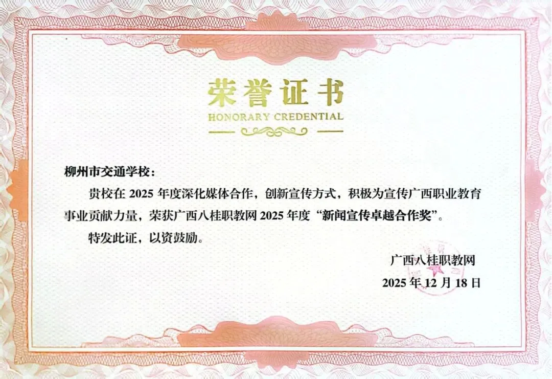 喜讯!柳州市交通学校两位教师获评“2025年度杰出技术专家”荣誉称号