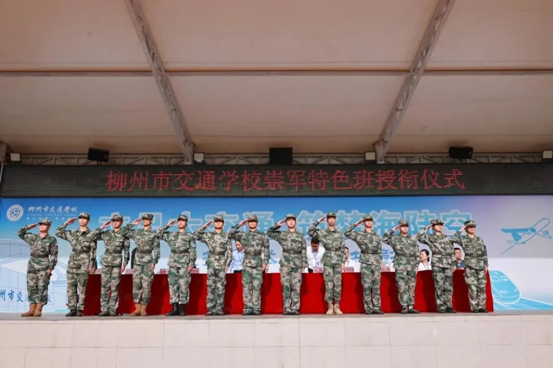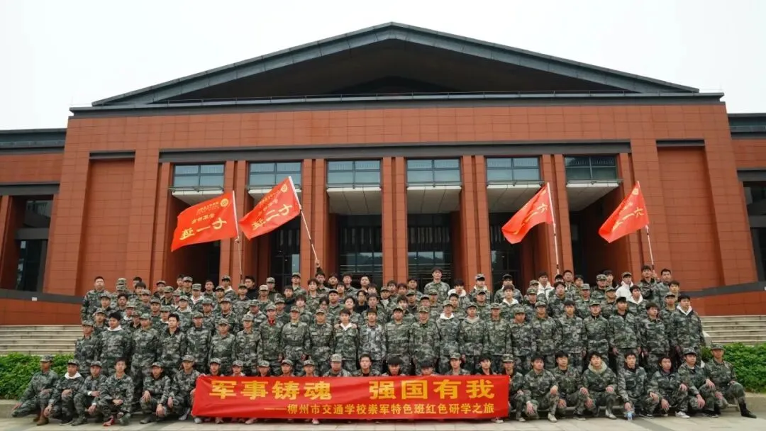 “立足大交通,筑梦海陆空”,学校以“军”铸魂、以“特”赋能,打造多维融合的特色德育载体,其中国防教育形成“体系化推进、全链条覆盖、沉浸式培育”的鲜明格局,学校获评“全国中小学国防教育示范学校”“柳州市最美崇军学校”,相关实践成为地方职教国防教育标杆。学校创新推行“专业+军事”融合模式,依托船舶驾驶、新能源汽车运用与维修等专业建设“崇军特色社团”,按“五个一”标准实施准军事化管理,形成“一系一品牌”的全覆盖格局。开展军事技能比武、国防知识竞赛、红色研学等特色活动;组织学生走进军营、军事博物馆参观学习、参与征兵宣传;结合“三月三”开展民族非遗活动铸牢中华民族共同体意识,实现国防教育入脑入心、见行见效。