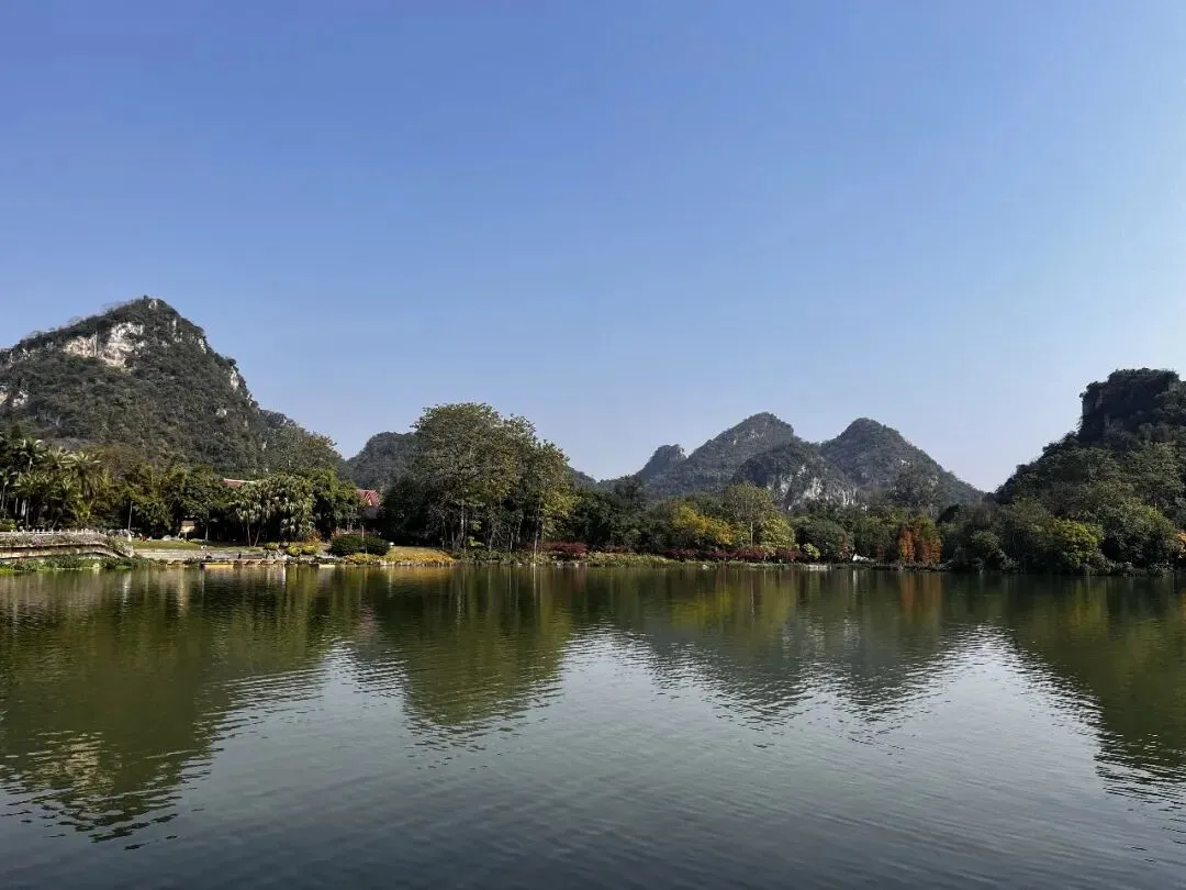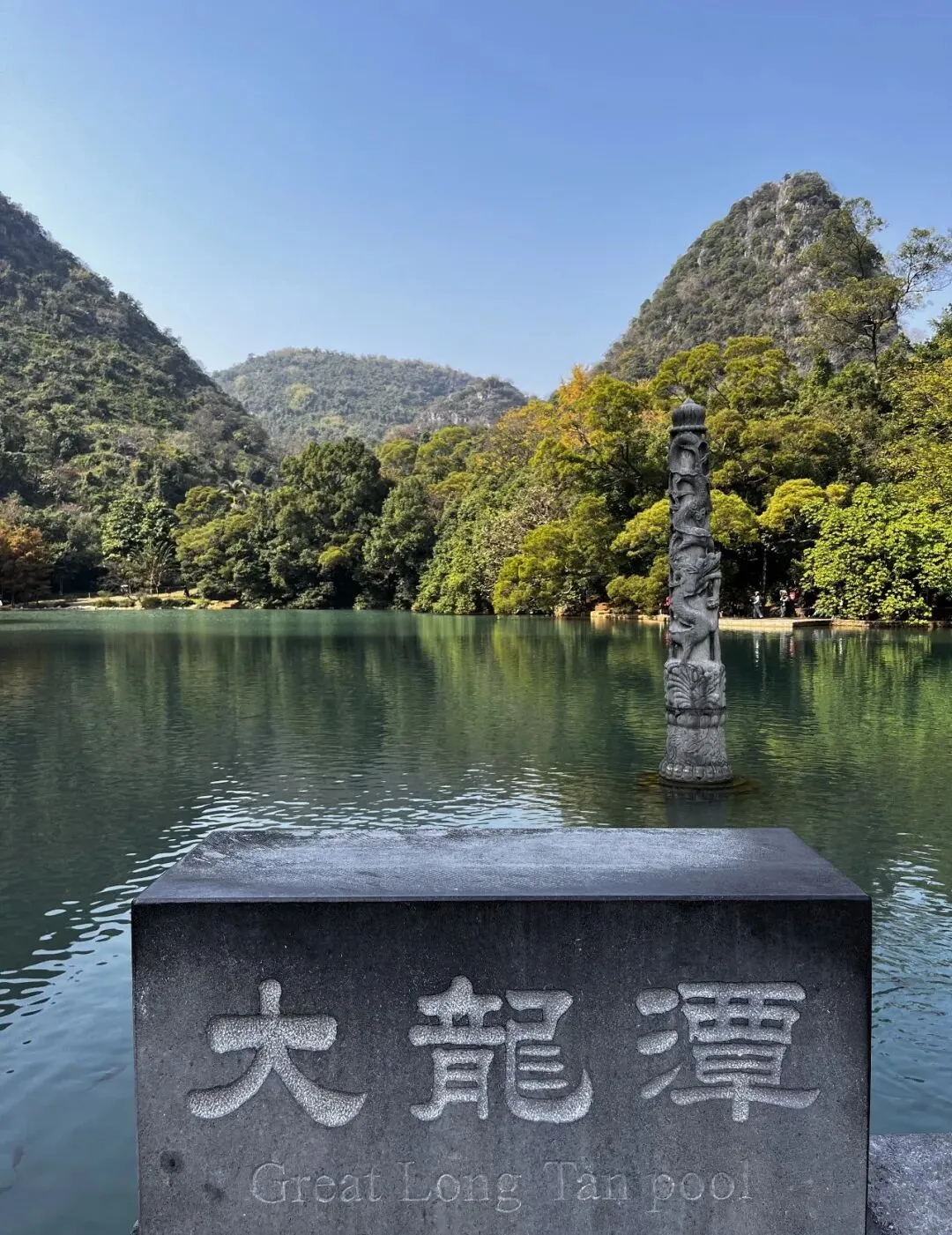 走入园内,林木苍翠、群山环抱、潭水清澈、游客众多,景色很桂林,一点也不亚于收费景区。