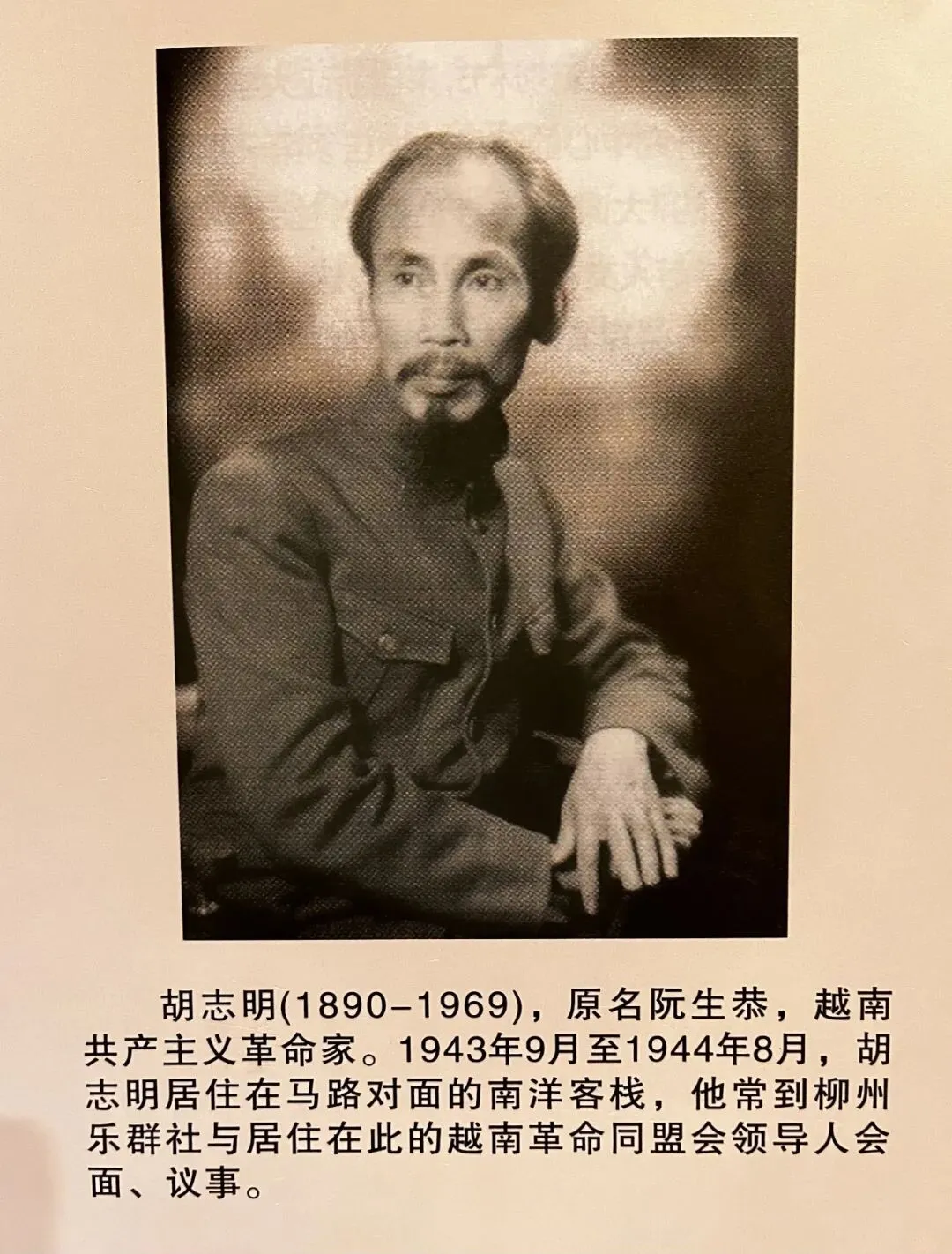 这幢两层建筑的西北部转角处矗立四层方形钟楼,雄伟壮观,在柳州有种鹤立鸡群之感。1935年,柳庆公路总局和汽车总站迁至鱼峰山北端,这里成了“乐群社”。来乐群社的多是军政要员和知名人士,周培源、茅盾、徐悲鸿等都在此留宿。1943年9月至1944年8月,胡志明在此办公。
