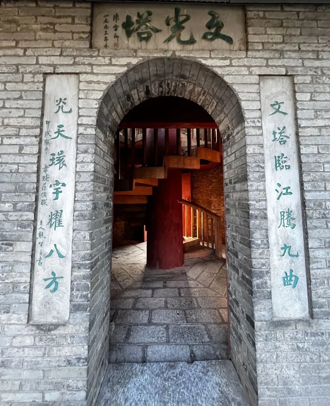 相比蟠龙塔,文光塔显得庄重古朴,深沉凝重。该塔有楼梯可上二楼,