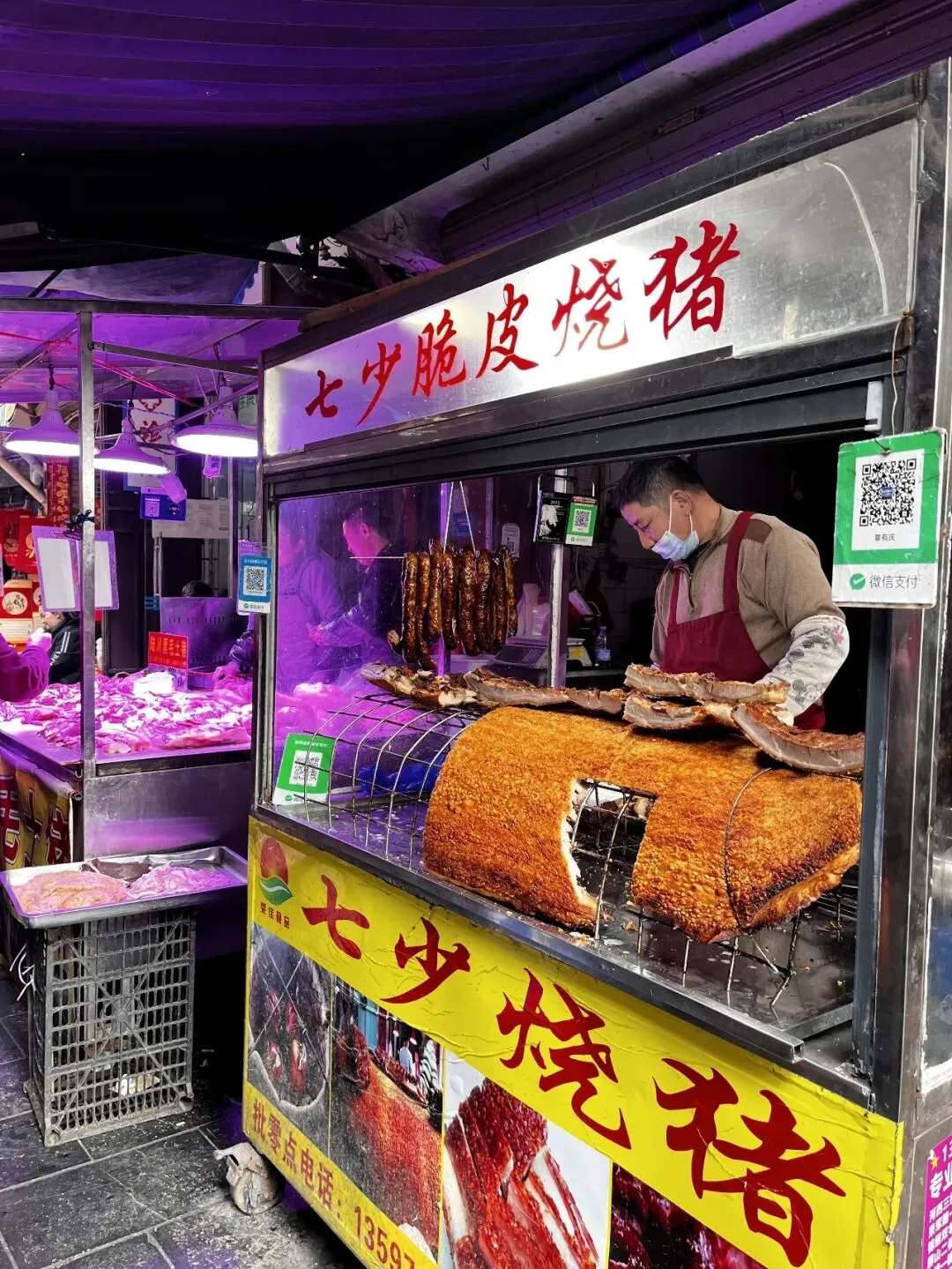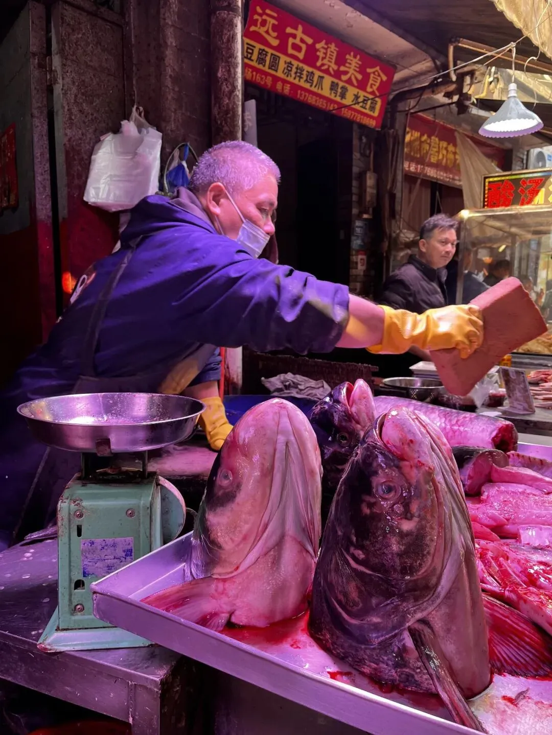 离开寺院,向第二站青云市场走去。市场地处市中心曙光西路与中山西路交汇处,它并非一个单纯的菜市场,而是一个大型的、自然形成的街边集市,融合了生鲜食材、日用百货和地道小吃,近年来已成为柳州旅游的热门站点,天天人流如织。离寺院十分钟不到,就是曙光西路历史文化街区,即青云市场一部分。