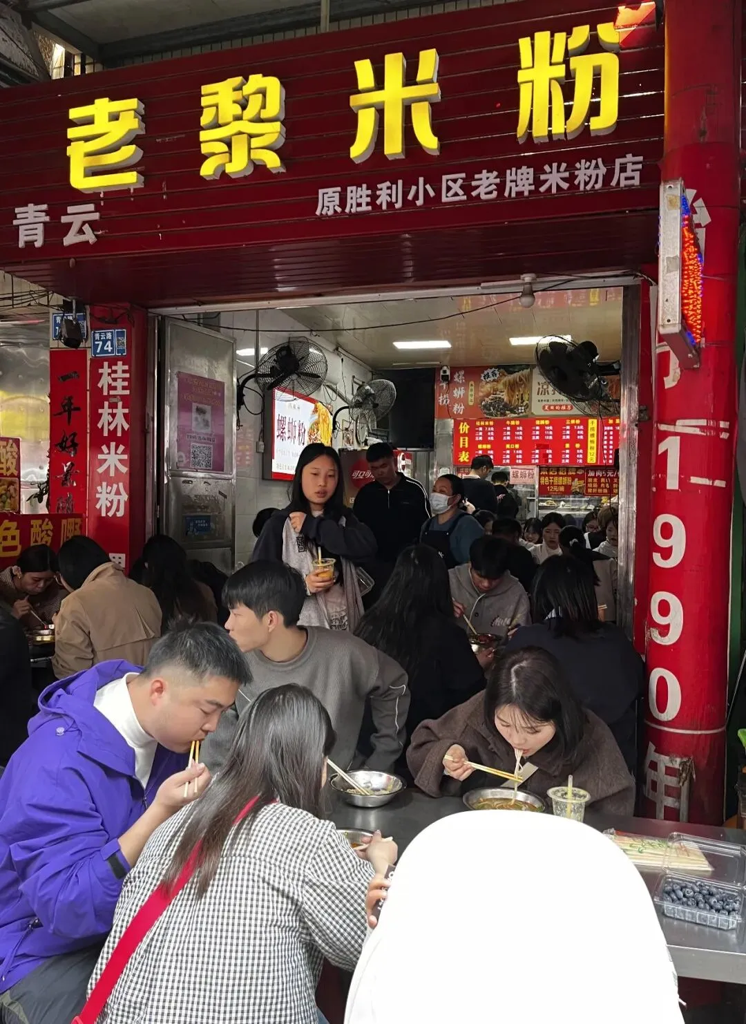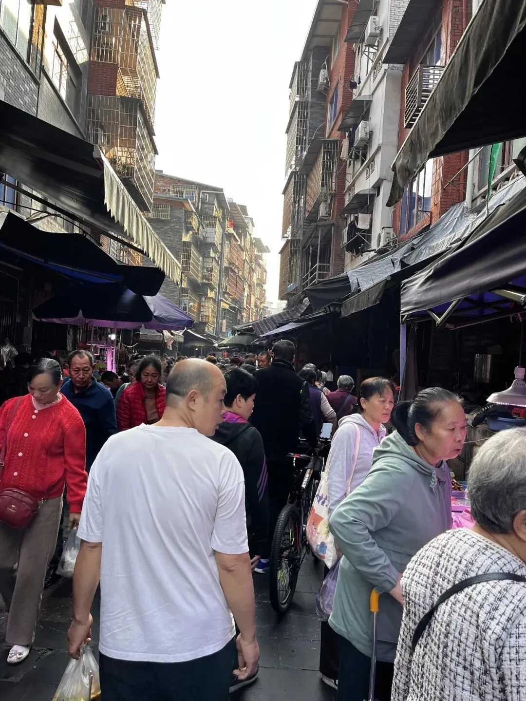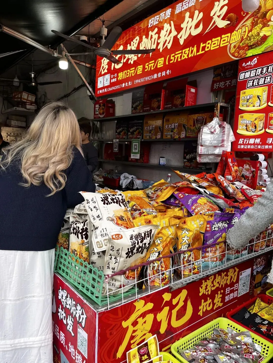 只见马路两边全是小吃、生鲜、地方特色产品,真是应有尽有,好有市井气息的一个市场,一向不怎么热衷购物的我感觉什么都好,什么都想买。从来没看到过这么多的人一起逛市场,逛着逛着我还差点迷路,实在记不清总共有几条马路。后来走累了,在“老黎米粉”家嗦了一碗螺狮粉,价格非常实惠,一两的才9元,这是我人生第一碗螺狮粉,味道很不错。