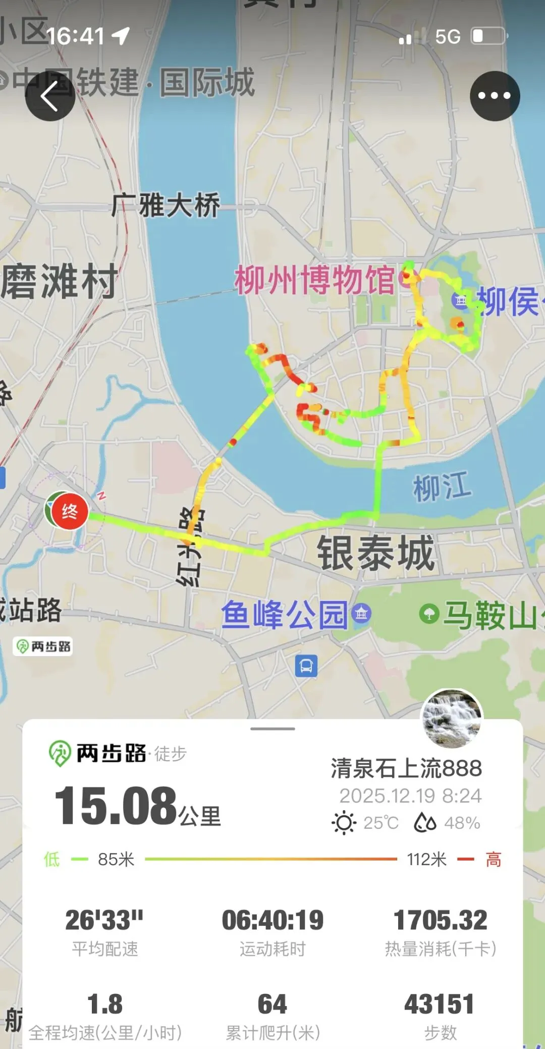 如此美好的柳州真舍不得离开,这样的天气太适合我了,让人一步三回头。5点左右回到旅店,去咫尺之遥的火车站。今天在柳州徒步15公里。