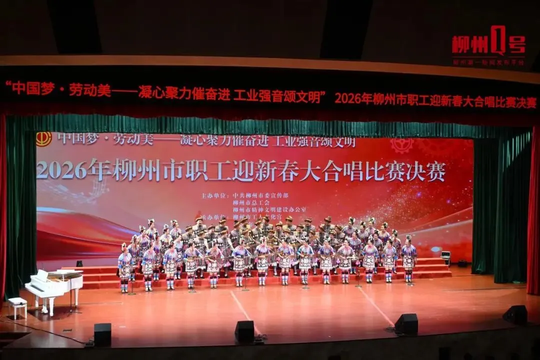 2月1日,“中国梦·劳动美——凝心聚力催奋进 工业强音颂文明”2026年柳州市职工迎新春大合唱比赛决赛,在柳州市工人文化宫举行。市委常委、宣传部部长谢建伟,市人大常委会副主任、市总工会主席张建国出席活动。