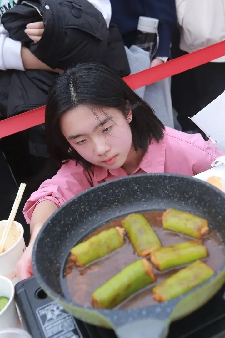 与此同时,健康饮食知识问答竞赛同样热闹非凡。“能不能每道菜都放辣椒?”“食物搭配的常见误区有哪些?”一道道趣味十足的题目引发同学们踊跃参与,大家或快速抢答,或轻声讨论,在轻松互动中学习食品储存、营养搭配、安全鉴别等实用知识,让健康饮食理念深入人心。答题通关后的小奖品更是让现场氛围持续升温,成为厨艺大赛之外的另一道精彩风景线。