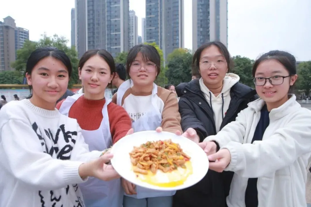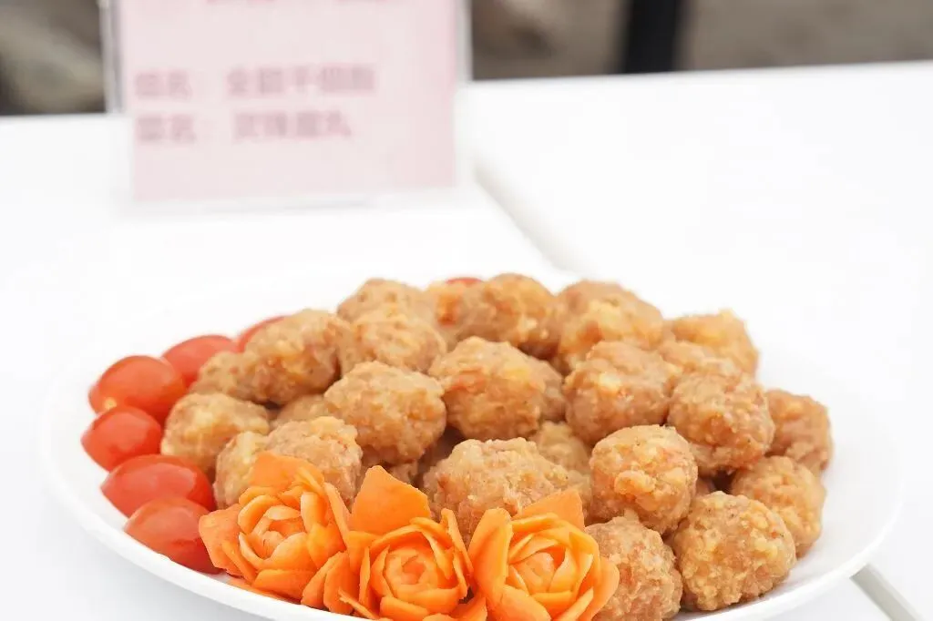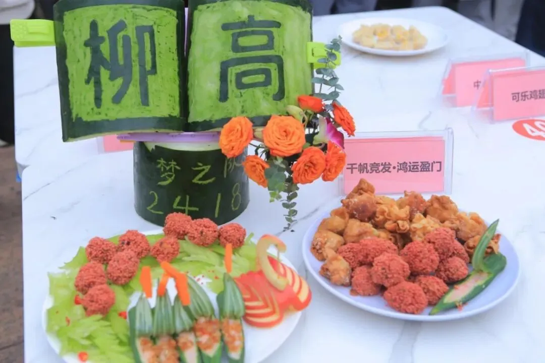 有的小组专攻传统菜式,颠勺翻锅间尽显功底,糖醋的酸甜交织、麻辣的鲜香扑鼻,每一口都是对经典味道的致敬;有的小组大胆创新,将地域特色与现代审美相融,用胡萝卜雕刻校徽点缀餐盘,以花草摆盘赋予菜品诗意,让寻常食材焕发别样光彩。