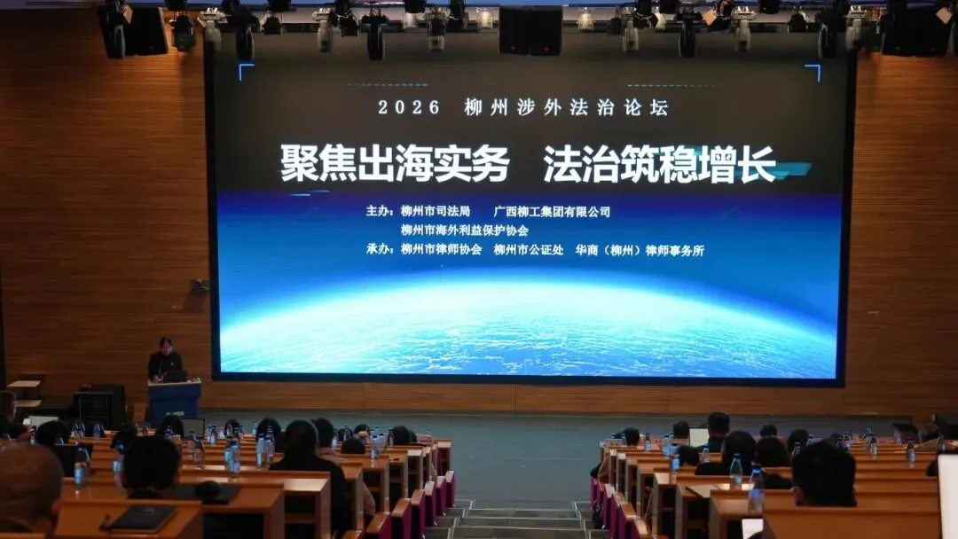 法治护航,柳企扬帆。1月30日,2026年第一期柳州涉外法治论坛在广西柳工机械股份有限公司全球研发中心报告厅圆满举办。本次论坛以“聚焦出海实务 法治筑稳增长”为主题,由柳州市司法局、广西柳工机械股份有限公司、柳州市海外利益保护协会联合主办,柳州市律师协会等单位承办,140余名政企学研及法律界代表齐聚一堂,共话涉外法治建设、共商出海发展良策,为柳州企业开拓海外市场、聚力向海图强搭建起涉外法治交流平台,有力筑牢法治屏障。
