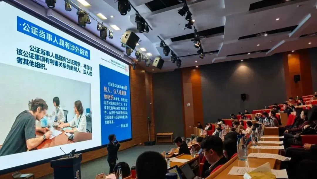 随后,广东华商律师事务所执行合伙人齐梦林聚焦实务,围绕企业国际化发展的法治路径与实践要点展开深度讲解,并结合典型案例给出切实可行的解决方案与实操策略;柳州市公证处副主任张敏聚焦涉外公证实务中的高频问题,详细讲解涉外公证办理流程、材料规范及各国认证要求,助力企业提升涉外公证办理效率。互动环节,参会代表们也积极互动提问,现场氛围热烈浓厚,实现了“问有所答、惑有所解、学有所获、用有所得”的良好效果。