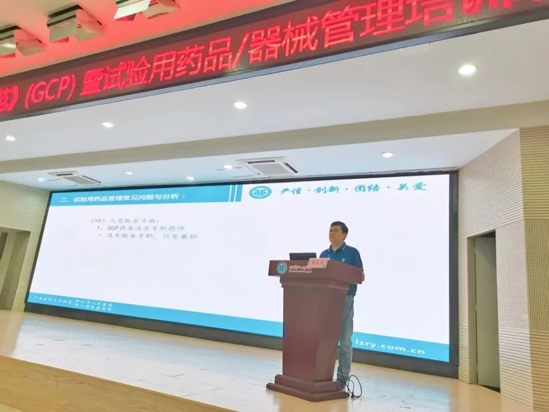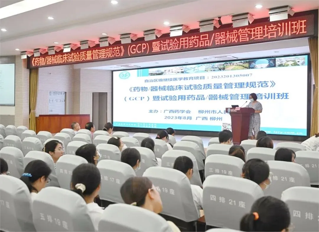 8月4-5日,由柳州市人民医院和广西药学会主办的《药物/器械临床试验质量管理规范》 (GCP)暨试验用品/器械管理培训班成功举办。来自区内的药物/器械临床试验研究者、机构办成员、伦理委员会委员、相关辅助科室人员和临床研究协调员(CRC)等300余人参加了本次培训。柳州市人民医院副院长、机构主任石展英,广西药学会秘书长黄瑞松出席开幕式并致辞。培训班由机构办公室副主任谢瑞杰主持。