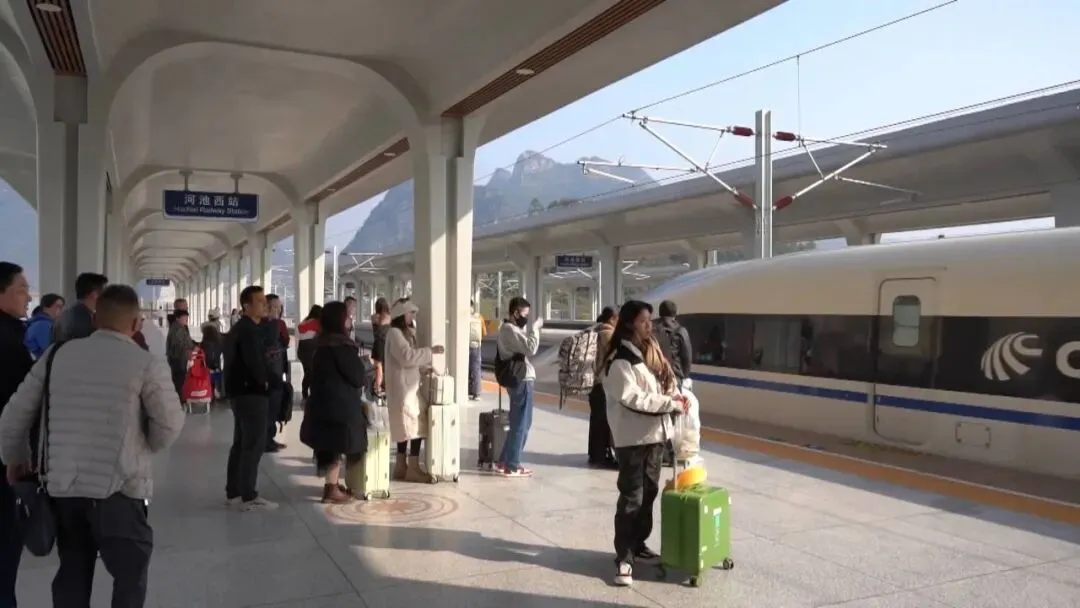 在运力安排方面,我们南宁局,节前以成渝还有昆明以及管内各方向为重点,安排了客车449对,同比去年增长了4.9%,然后节后以广深还有上海、杭州等方向为重点,安排了客车452.5对,同比增长了5.2%,尤其是夜间动车,今年计划安排开行88对,为历年春运之最。