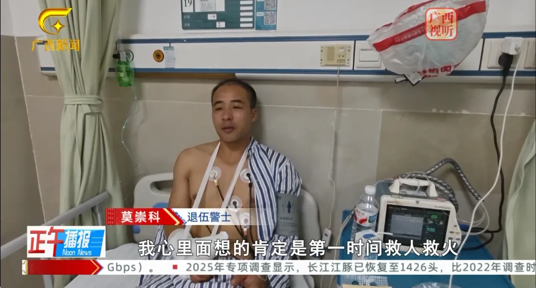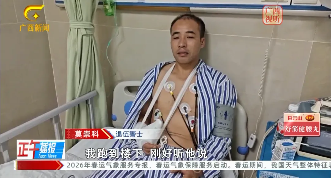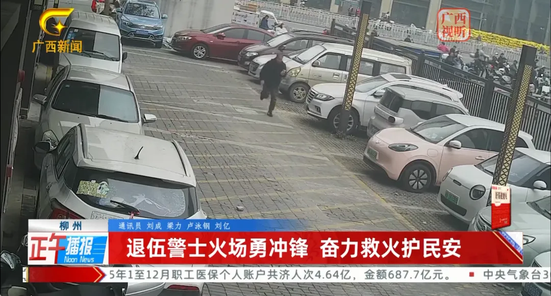 1月29日中午,柳州某小区发生火灾,途经此处的退伍警士莫崇科,不顾个人安危冲入浓烟、破窗灭火,守护了群众生命财产安全。