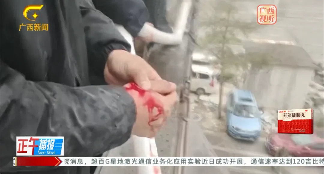 救火过程中,因用力过猛且灭火器后坐力带动,莫崇科的右手被碎裂的玻璃严重割伤,拇指肌腱完全断裂,多处血管受损。